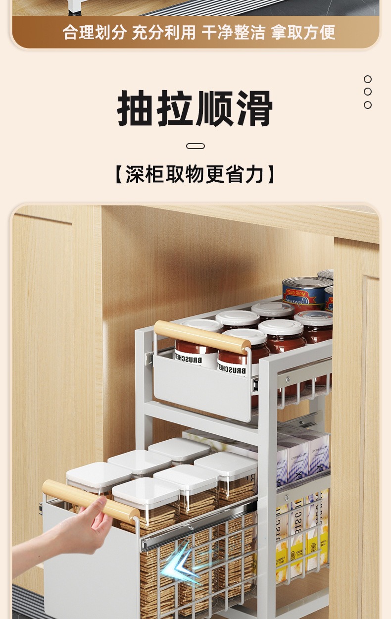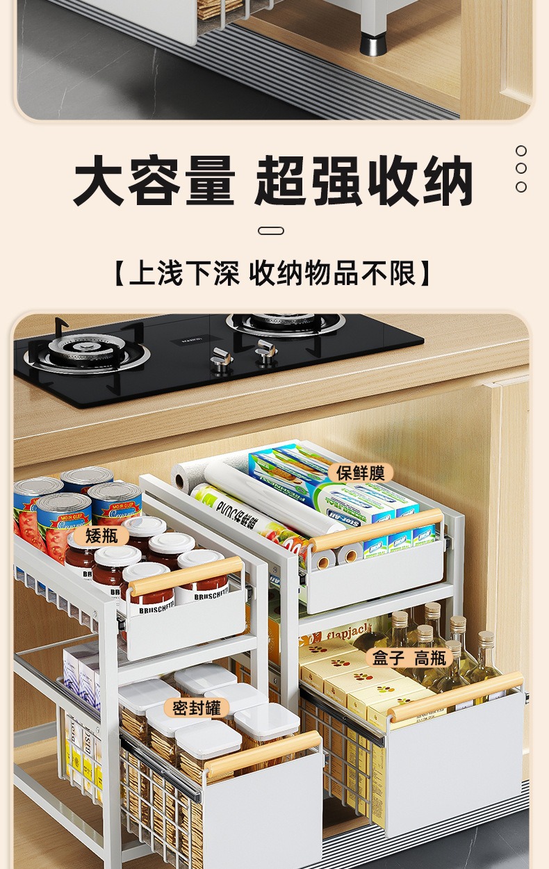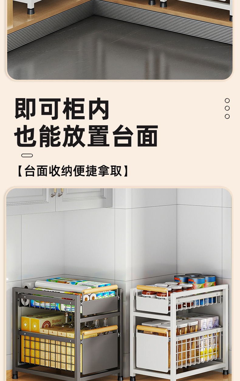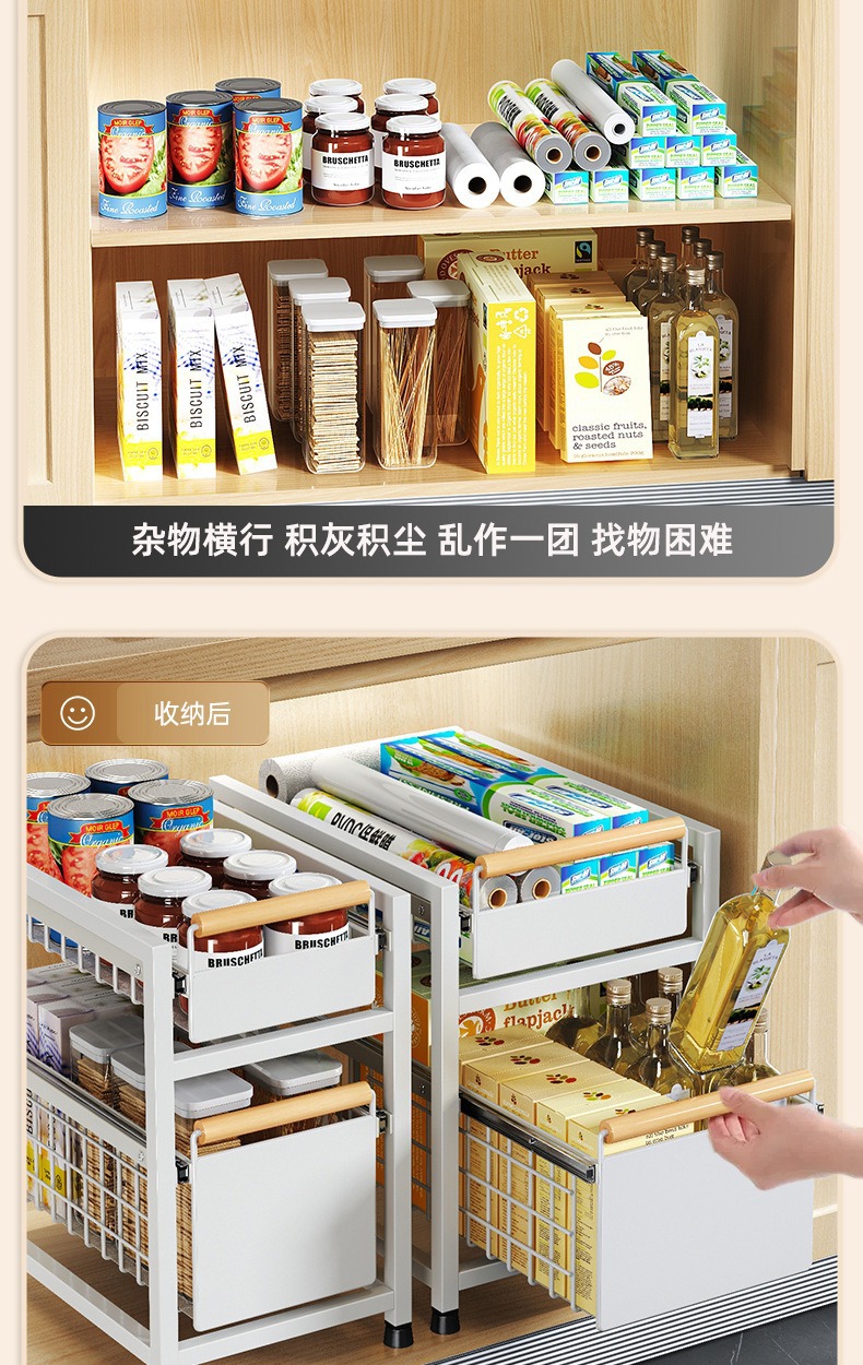 Estante de almacenamiento del fregadero de la cocina Estante estratificado tipo extracción multifuncional Estante de almacenamiento multicapa Tazo de condimento Cesta de extracción del armario de cocina