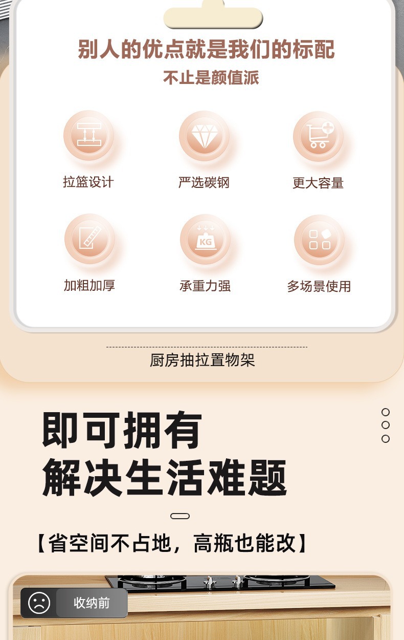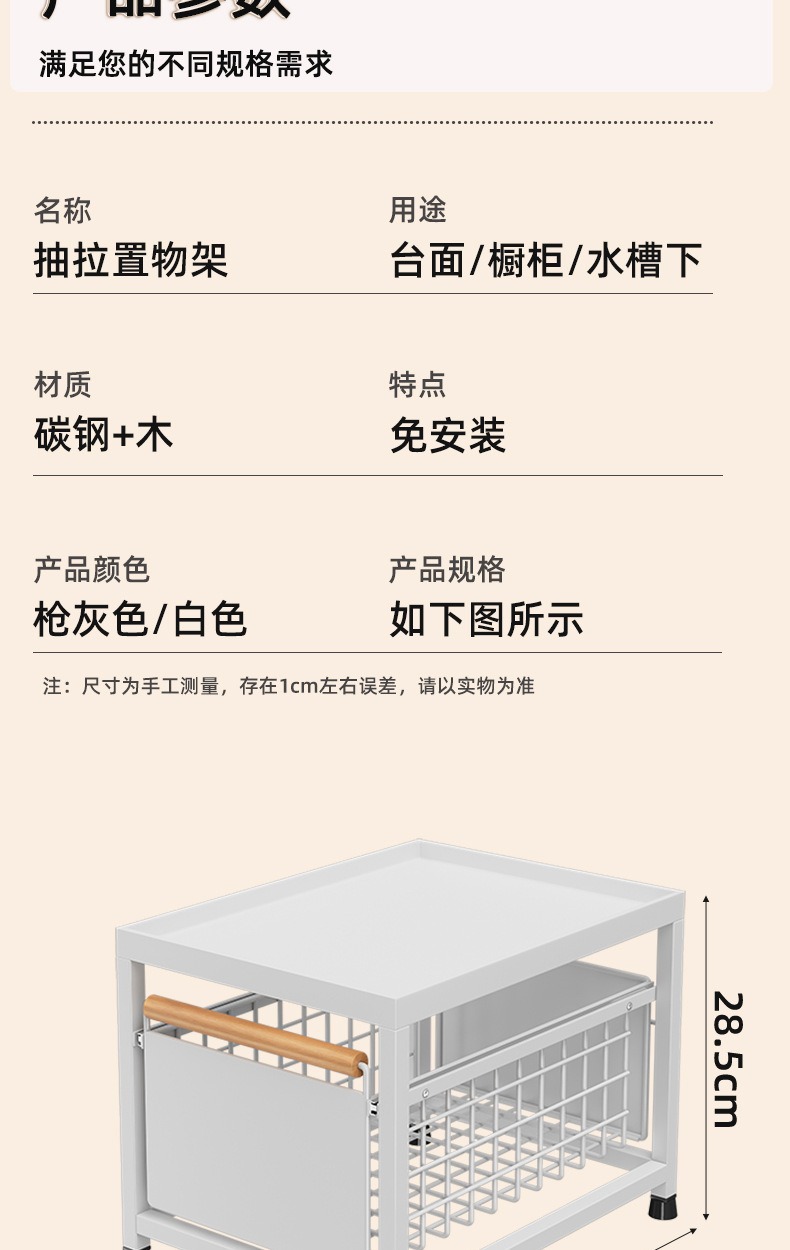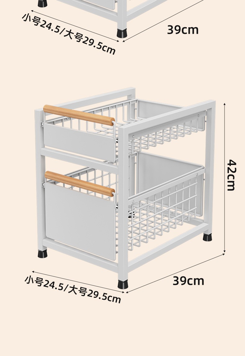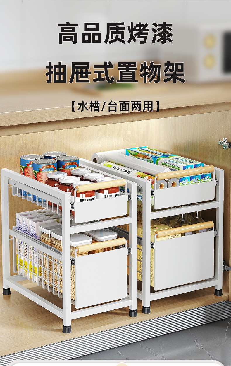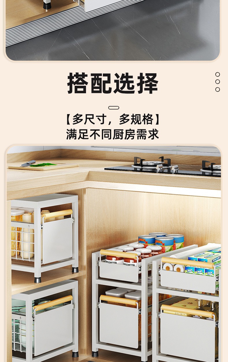 Estante de almacenamiento del fregadero de la cocina Estante estratificado tipo extracción multifuncional Estante de almacenamiento multicapa Tazo de condimento Cesta de extracción del armario de cocina