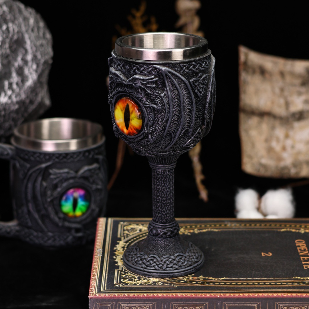 2024 nueva taza de vino de ojo de dragón taza de pie alto taza de acero inoxidable personalidad regalo de Halloween
