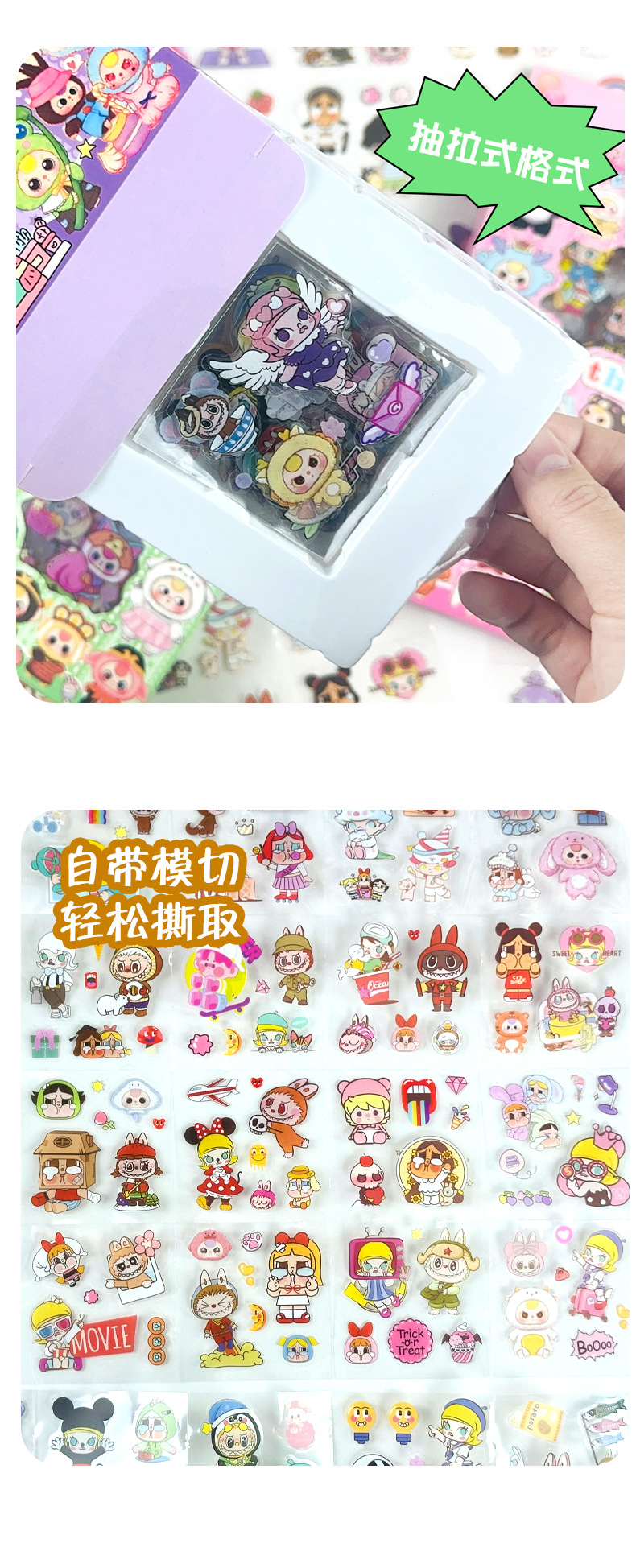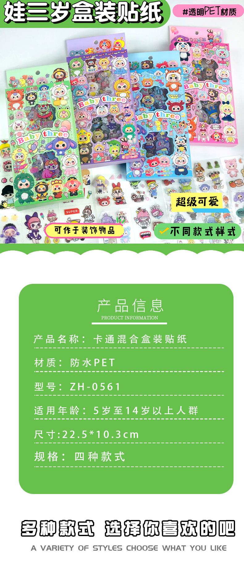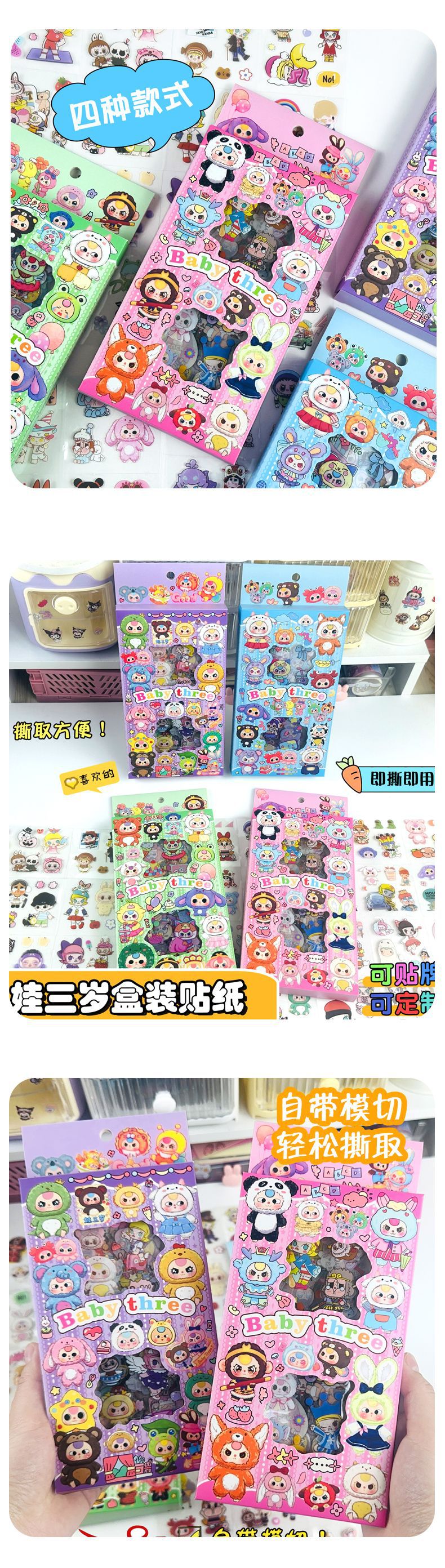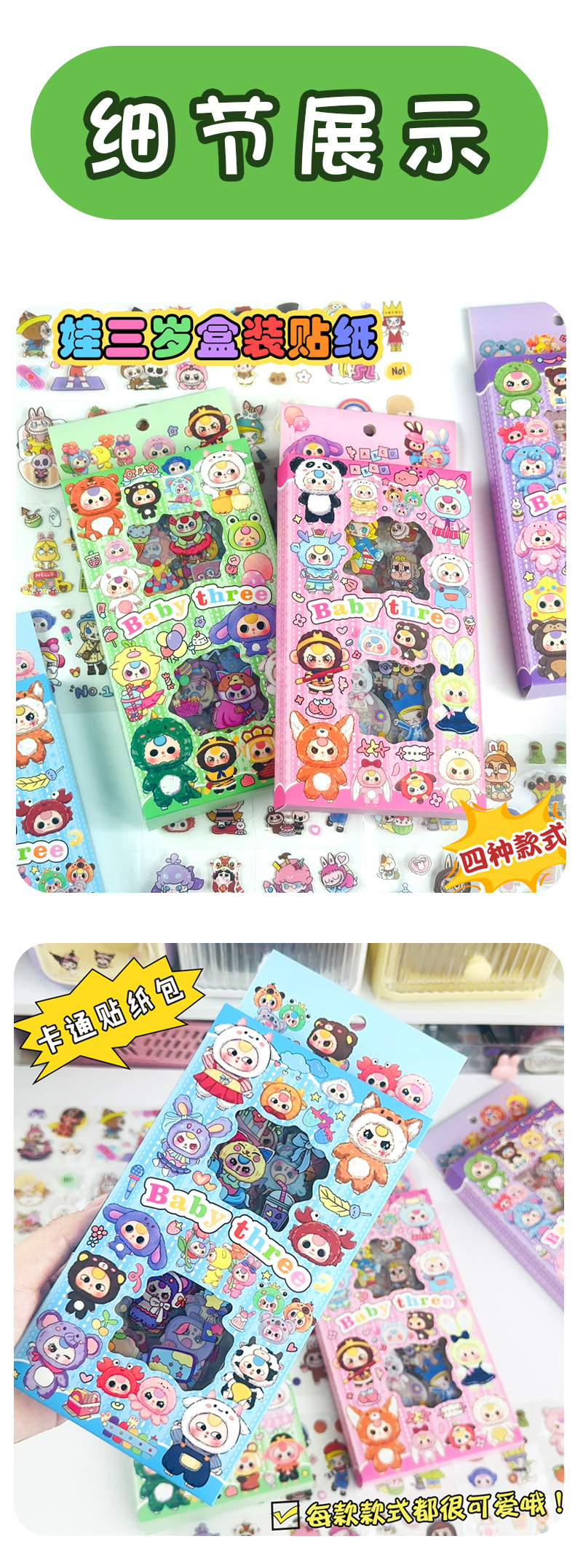 Cuatro tipos de pegatinas de caja de dibujos animados transfronterizos de tres años de edad, materiales impermeables de mascotas adorables y creativos DIY