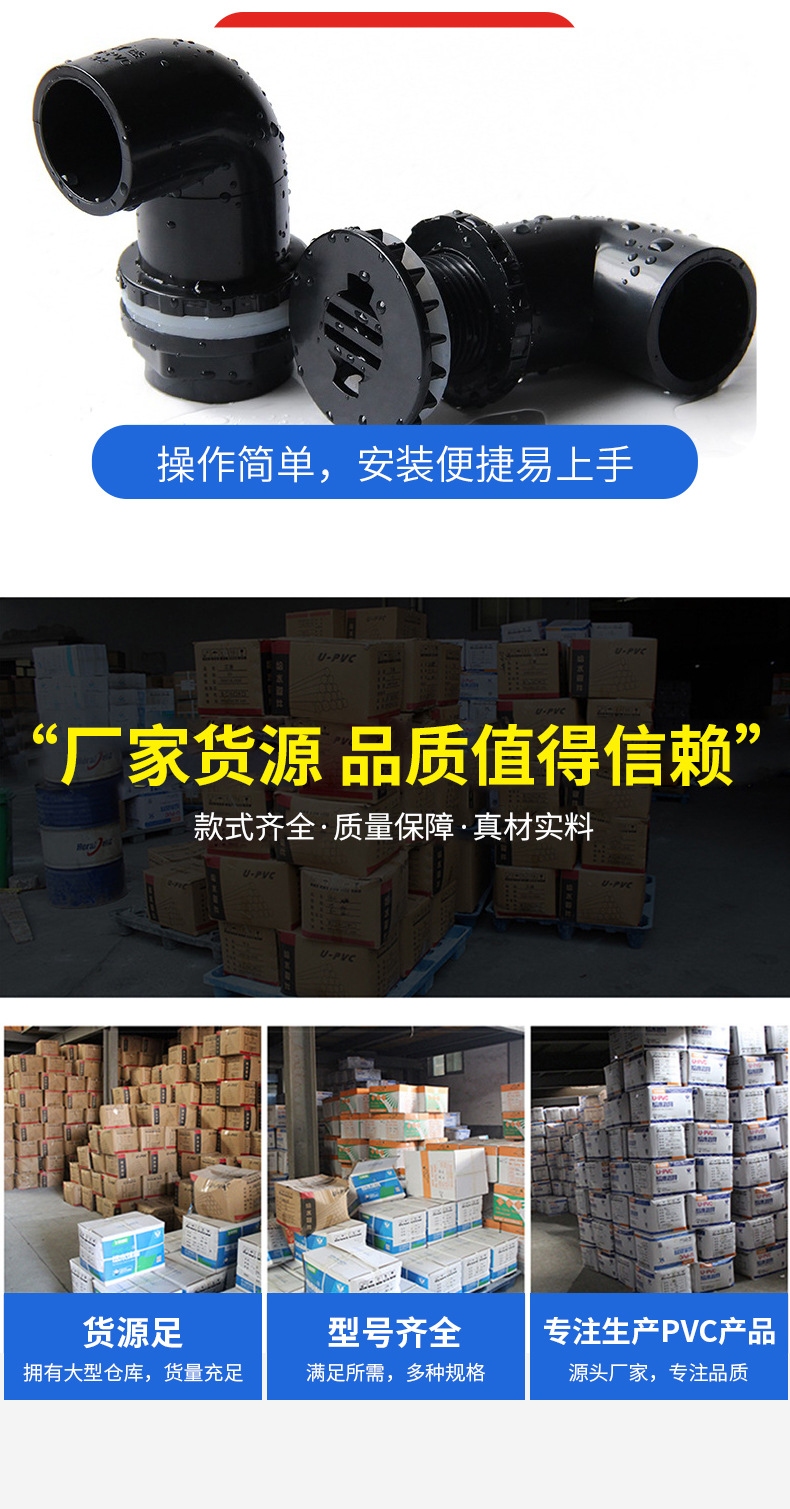 | Especificaciones del producto | 20黑色给水直接(1200个/箱),25黑色给水直接(900个/箱),32黑色给水直接(450个/箱),40黑色给水直接(273个/箱),50黑色给水直接(218个/箱),20黑色给水弯头(800个/箱),25黑色给水弯头(550个/箱),32黑色给水弯头(300个/箱),40黑色给水弯头(180个/箱),50黑色给水弯头(100个/箱),20黑色给水三通(550个/箱),25黑色给水三通(350个/箱),32黑色给水三通(200个/箱),40黑色给水三通(150个/箱),50黑色给水三通(84个/箱),20黑色给水直弯(1400个/箱),25黑色给水直弯(900个/箱),32黑色给水直弯(480个/箱),40黑色给水直弯(290个/箱),50黑色给水直弯(160个/箱),20纯黑加厚八角球阀(360个/箱 纯黑球体与手柄),25纯黑加厚八角球阀(220个/箱 纯黑球体与手柄),32纯黑加厚八角球阀(140个/箱 纯黑球体与手柄),40纯黑加厚八角球阀(90个/箱 纯黑球体与手柄),50纯黑加厚八角球阀(70个/箱 纯黑球体与手柄),20黑色给水活接(400个/箱),25黑色给水活接(300个/箱),32黑色给水活接(210个/箱),40黑色给水活接(140个/箱),50黑色给水活接(100个/箱),20黑色给水透气帽(1800个/箱),25黑色给水透气帽(1200个/箱),32黑色给水透气帽(800个/箱),40黑色给水透气帽(480个/箱),50黑色给水透气帽(260个/箱),20黑鱼缸弯头(500个/箱),25黑鱼缸弯头(280个/箱),32黑鱼缸弯头(196个/箱),20加厚黑色鱼缸弯头(400个/箱),25加厚黑色鱼缸弯头(240个/箱),32加厚黑色鱼缸弯头(160个/箱),40加厚黑色鱼缸弯头(110个/箱),50加厚黑色鱼缸弯头(63个/箱),20黑鱼缸直接(600个/箱),25黑鱼缸直接(350个/箱),32黑鱼缸直接(280个/箱),20加厚黑色鱼缸直接(500个/箱),25加厚黑色鱼缸直接(320个/箱),32加厚黑色鱼缸直接(240个/箱),40加厚黑色鱼缸直接(150个/箱),50加厚黑色鱼缸直接(90个/箱),20加厚黑色鱼缸强排弯头(480个/箱),25加厚黑色鱼缸强排弯头(300个/箱),32加厚黑色鱼缸强排弯头(180个/箱),40加厚黑色鱼缸强排弯头(120个/箱),50加厚黑色鱼缸强排弯头(70个/箱),20加厚黑色鱼缸强排接头(600个/箱),25加厚黑色鱼缸强排接头(360个/箱),32加厚黑色鱼缸强排接头(270个/箱),40加厚黑色鱼缸强排接头(180个/箱),50加厚黑色鱼缸强排接头(110个/箱),20纯黑色球阀(400个/箱),25纯黑色球阀(240个/箱),32纯黑色球阀(130个/箱),25*20黑变径三通,32*20黑变径三通,32*25黑变径三通,40*25黑变径三通,40*32黑变径三通,50*20黑变径三通,50*25黑变径三通,50*32黑变径三通,50*40黑变径三通,25*20黑大小头,32*20黑大小头,32*25黑大小头,40*20黑大小头,40*25黑大小头,40*32黑大小头,50*20黑大小头,50*25黑大小头,50*32黑大小头,50*40黑大小头 |