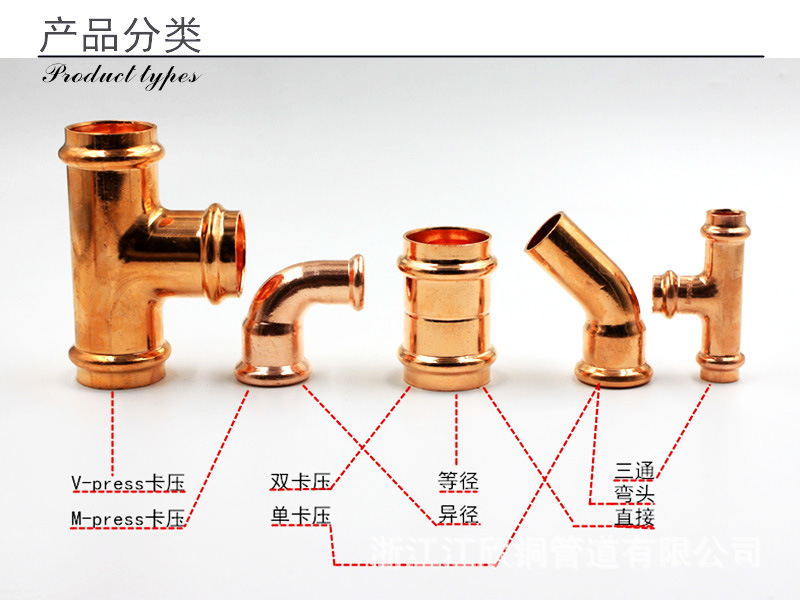 Cobre estándar estadounidense, accesorios de tubería de presión tipo V, tuberías de suministro de agua y juntas de calefacción, comercio exterior de EE. UU.