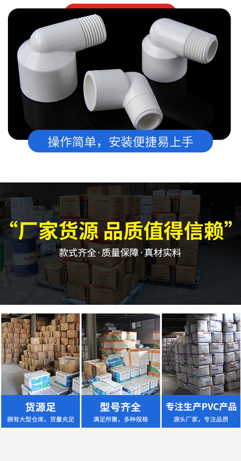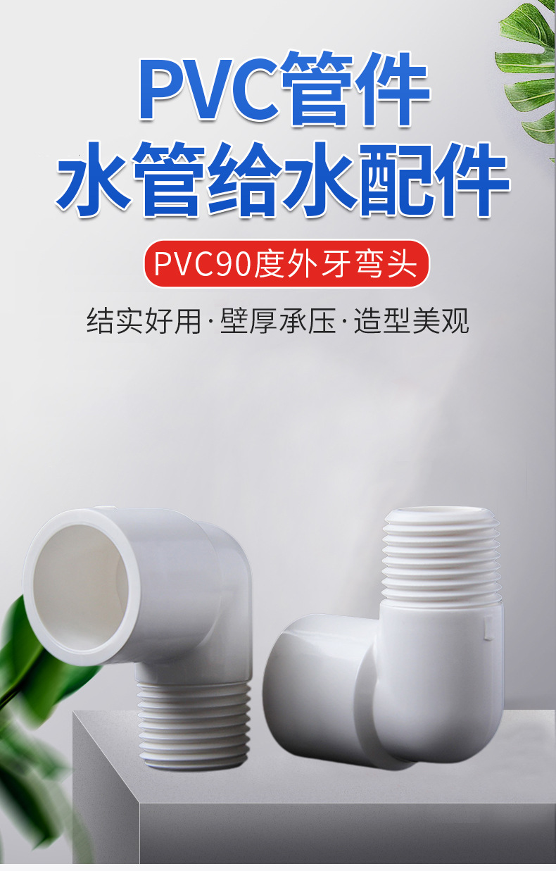 Fabricante de suministro de 90 grados codo de diente externo accesorios de suministro de agua PVC tubería de agua codo de tornillo externo conector adhesivo rosca unilateral