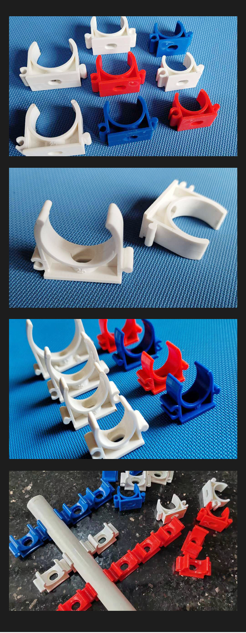 Tarjeta de ensamblaje de PVC, tarjeta de tubo en forma de U, tarjeta de unión roja, blanca y azul, gran cantidad de fijación de código.
