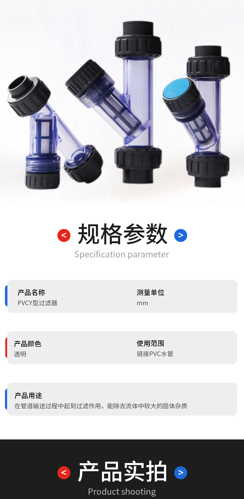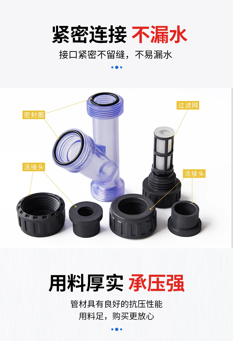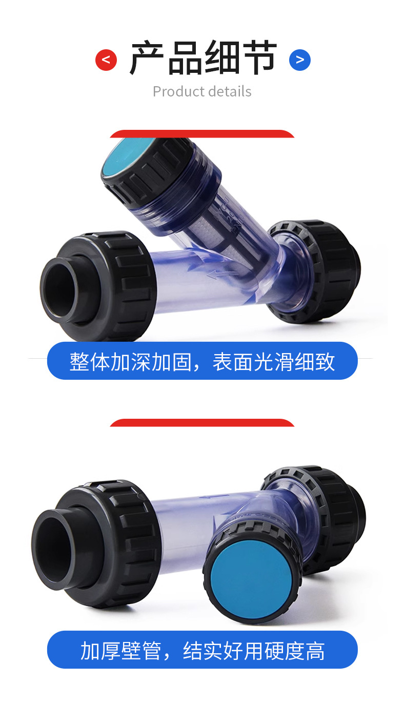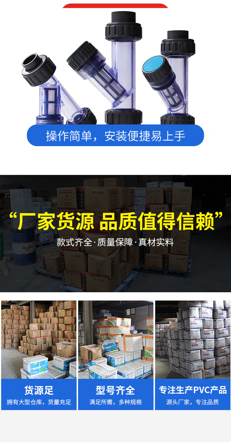Filtro de PVC, filtro de tubería de plástico UPVC, filtro transparente tipo Y, fabricantes de filtros domésticos en stock al por mayor