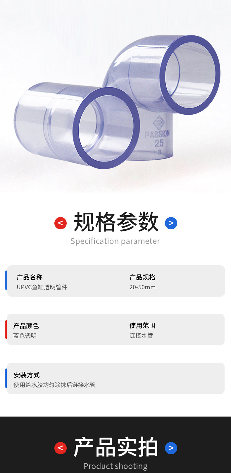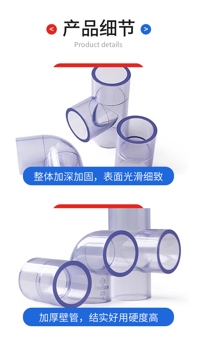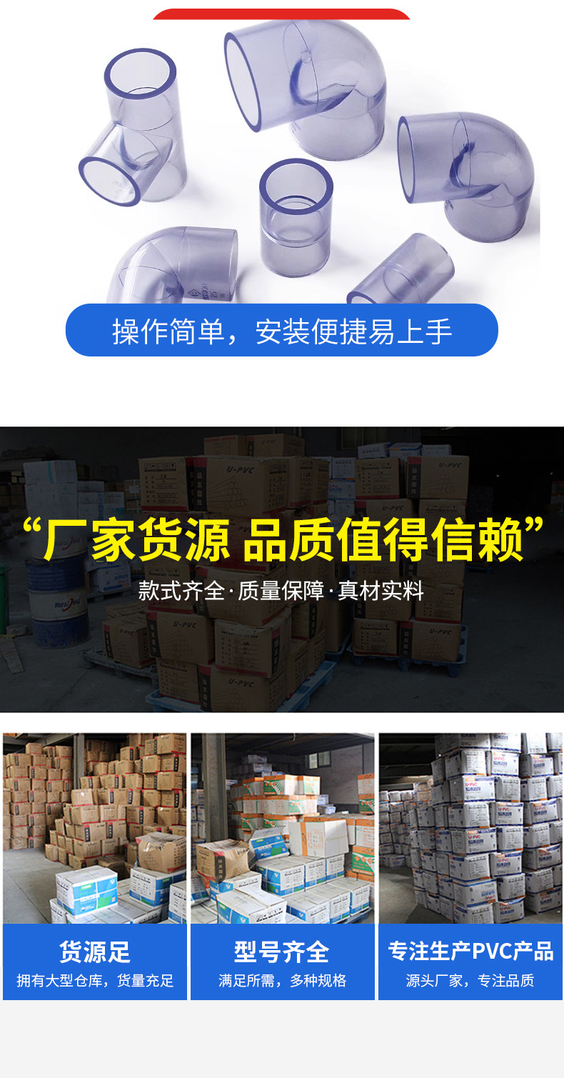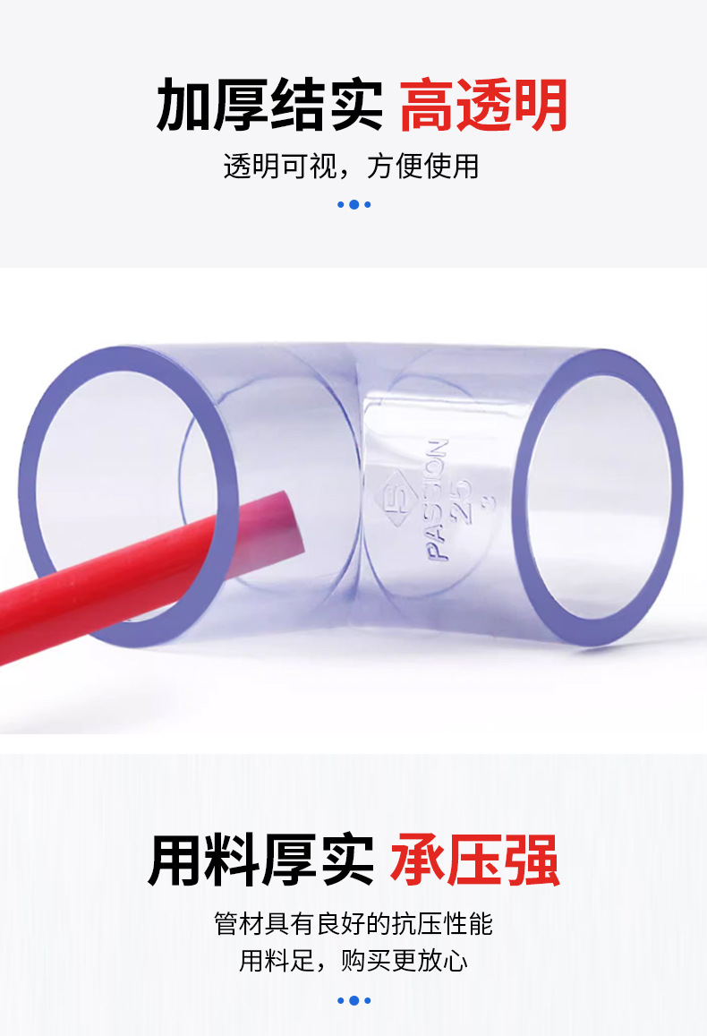 PVC tubería transparente codo tee 90 grados a través de tubería de plástico transparente accesorios de tubería de agua de suministro de agua directa