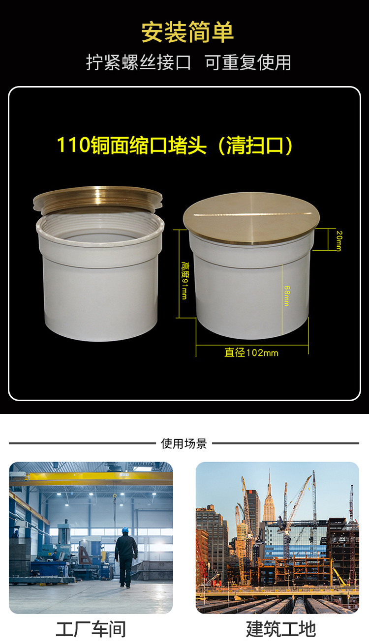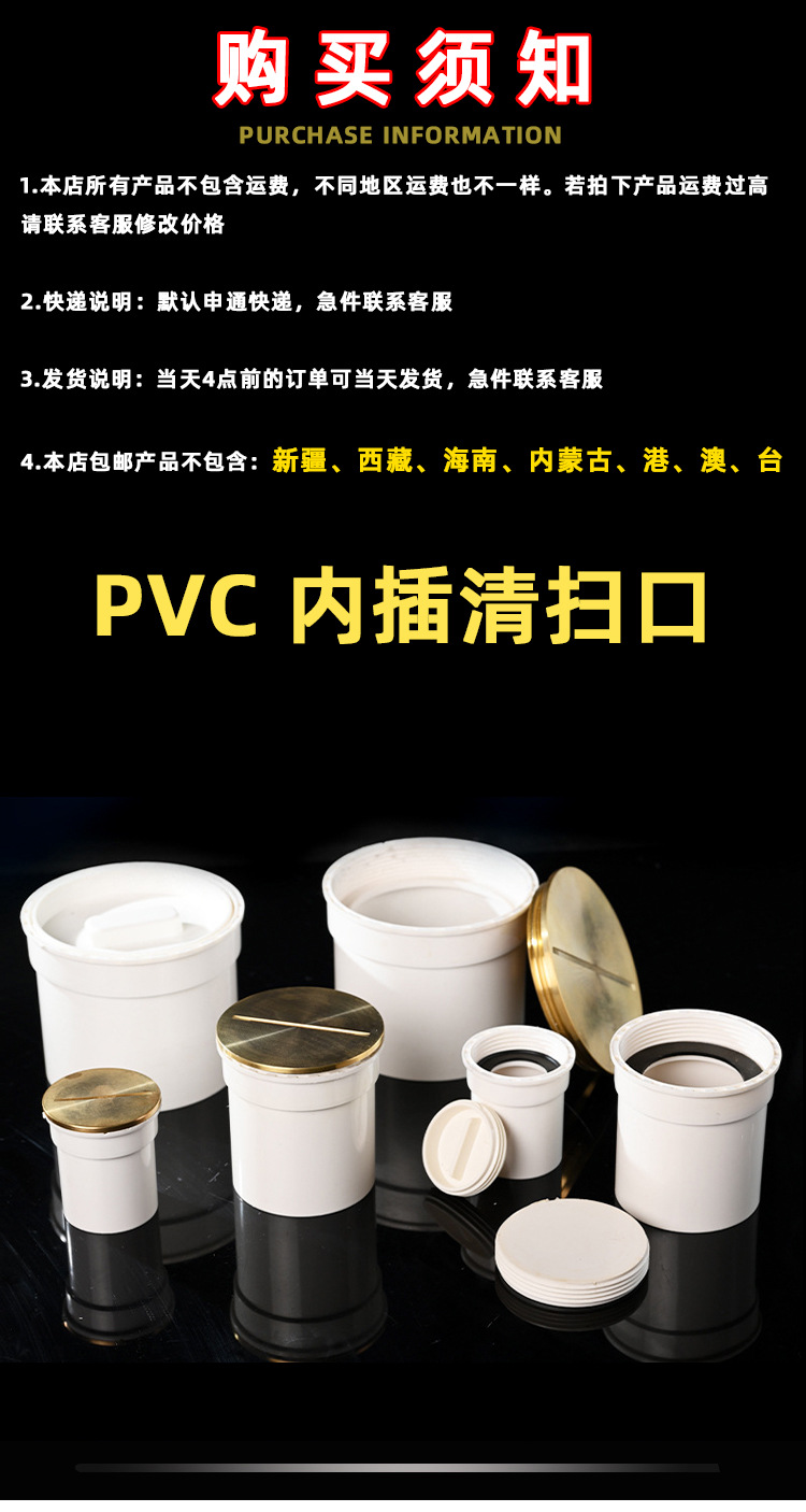 Accesorios de drenaje de PVC interpolados puerto de limpieza de cobre interpolados tapón de tubería 50 75 110 accesorios de drenaje tapón de tapa puerto de inspección