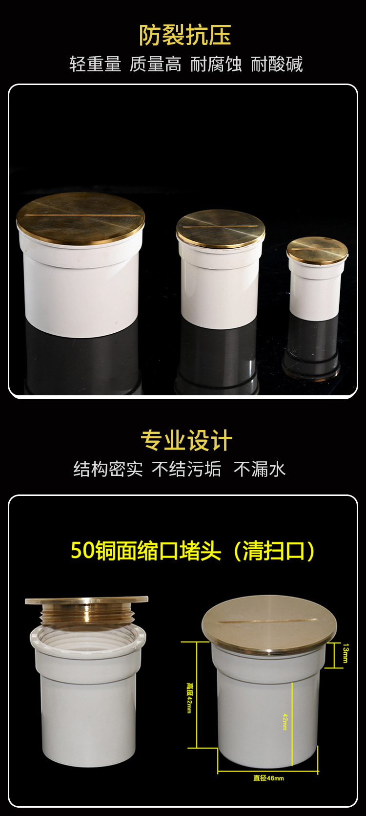 | Especificaciones del producto | Tubo insertado en la boca de limpieza de 50 contracciones (450 / caja), tubo insertado en la boca de limpieza de 75 contracciones (150 / caja), tubo insertado en la boca de limpieza de 110 contracciones (80 / caja), intubación en la boca de limpieza de 50 superficies de cobre (300 / caja), intubación en la boca de limpieza de 75 superficies de cobre (112 / caja), intubación en la boca de limpieza de 110 superficies de cobre (56 / caja) |