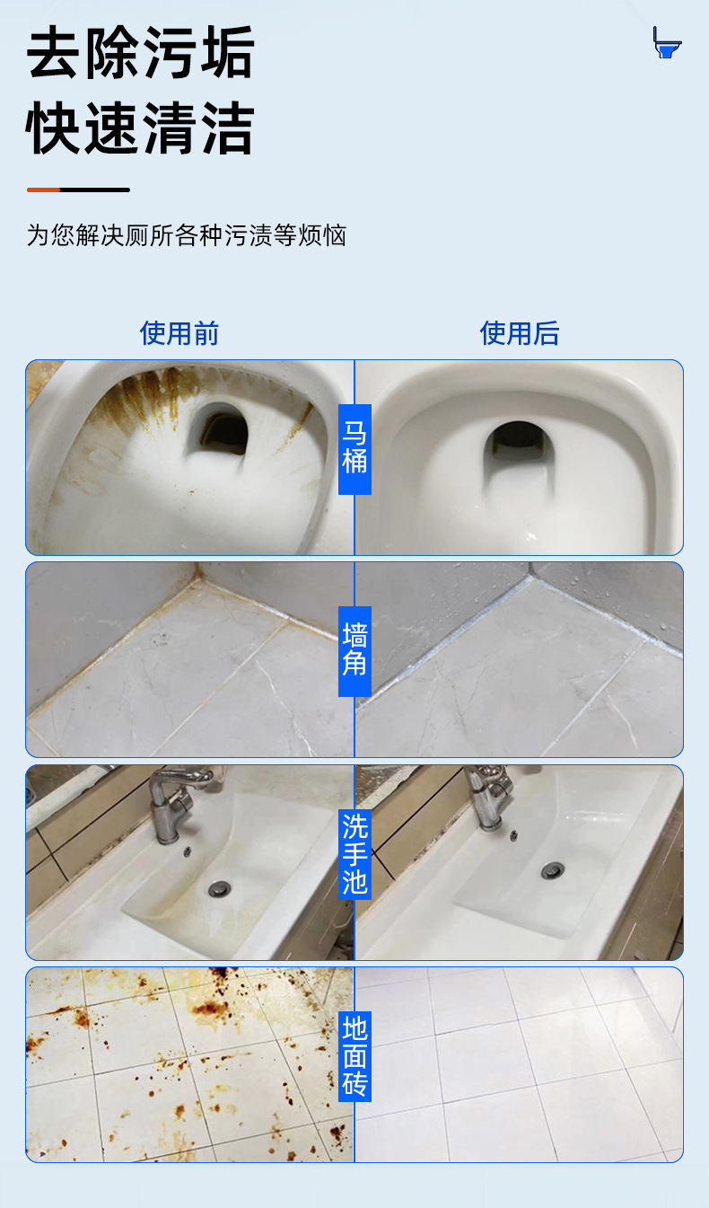 Limpieza de baldosas de baño inodoro escala universal inodoro detergente de suelo fuerte eliminación de suciedad desamarillado