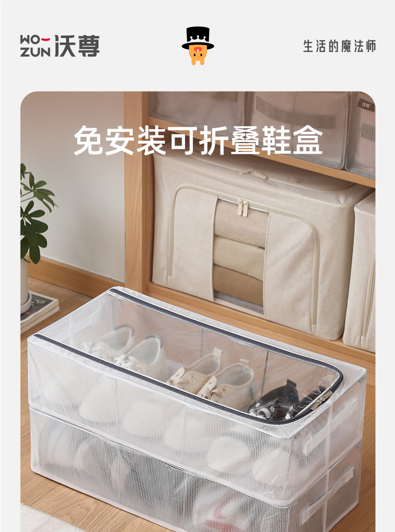 Caja de almacenamiento de caja de zapatos Instalación gratuita Zapatero plegable ahorra espacio Gabinete de zapatos transparente engrosado a prueba de polvo Caja de almacenamiento de artefactos