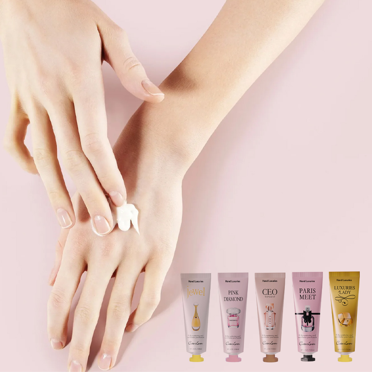 La misma crema de manos con perfume de marca grande tiene una fragancia perdurable y hidratante, así como un alto tipo de fragancia hidratante para otoño y invierno.