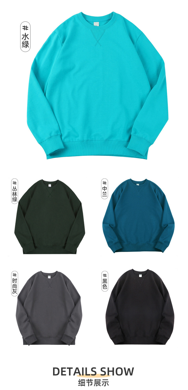 2022 340g algodón terry cuello redondo suéter ins gota hombro moda nicho estilo coreano hong kong estilo otoño y abrigo de invierno