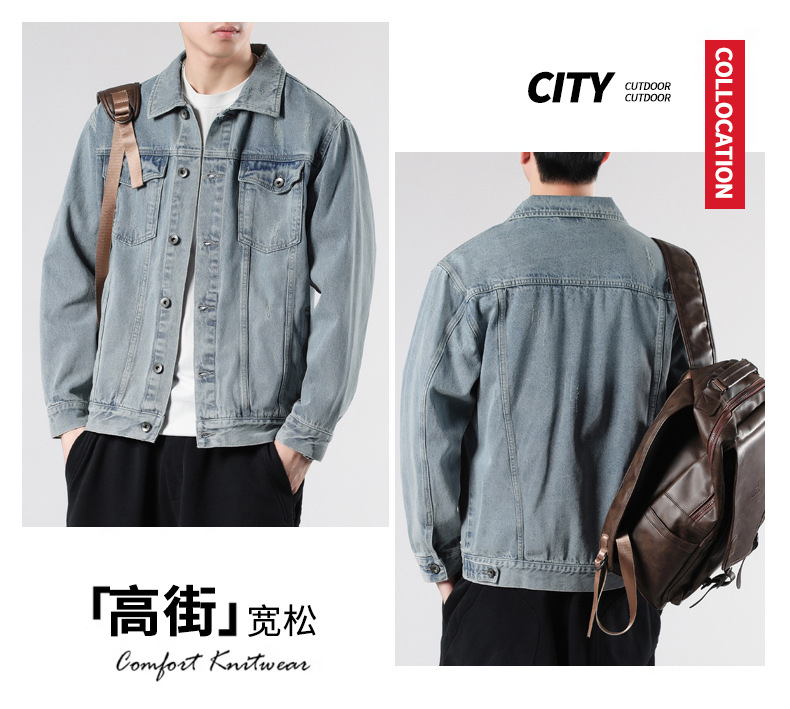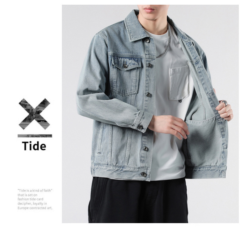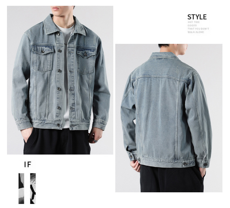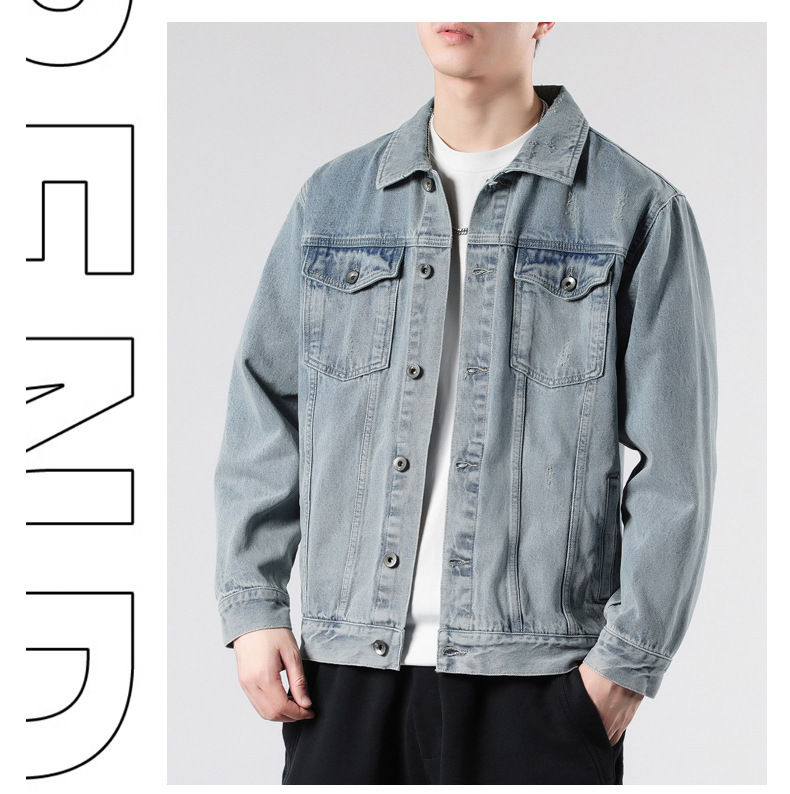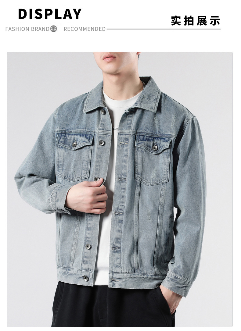 LKTM Men's Wear # Chaqueta de mezclilla azul luz de la luna lavada de la marca de moda estadounidense para hombres, chaqueta de todo fósforo casual guapo