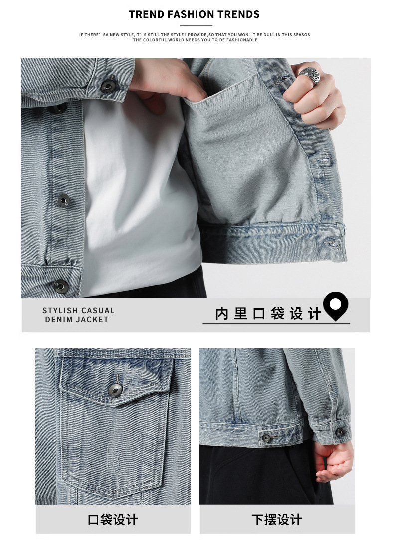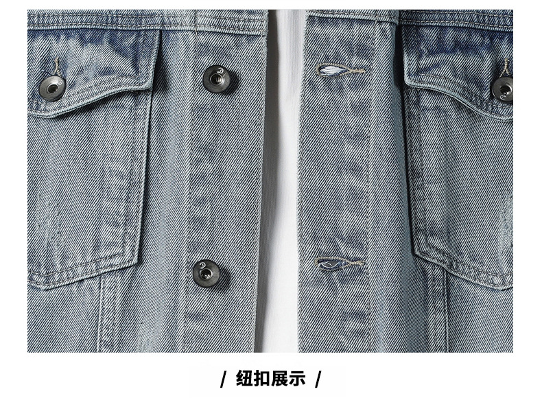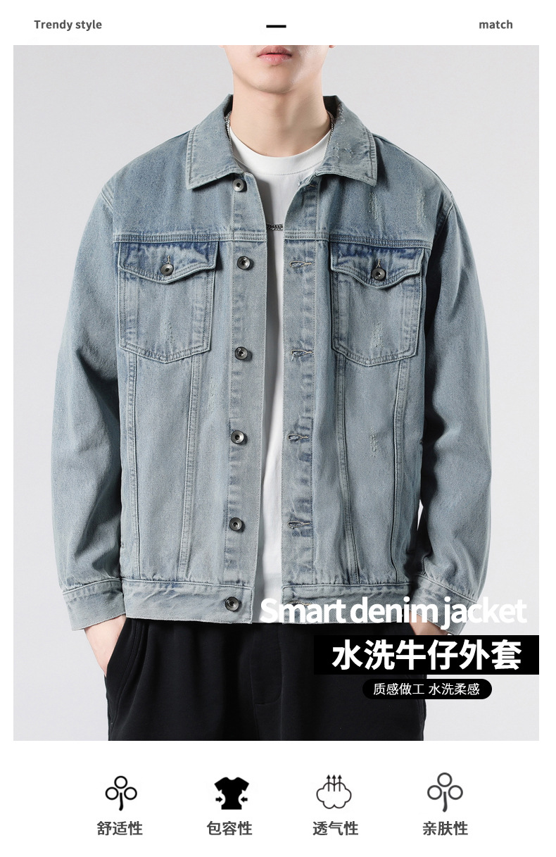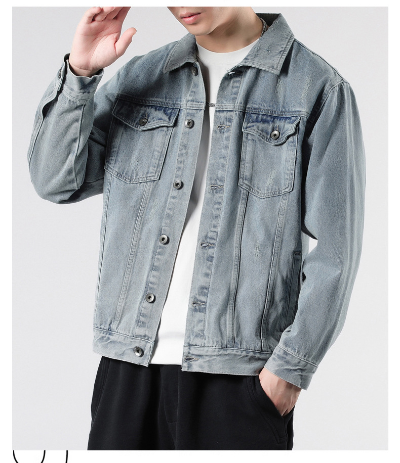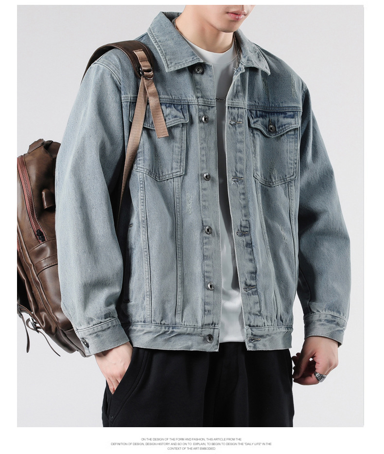 LKTM Men's Wear # Chaqueta de mezclilla azul luz de la luna lavada de la marca de moda estadounidense para hombres, chaqueta de todo fósforo casual guapo