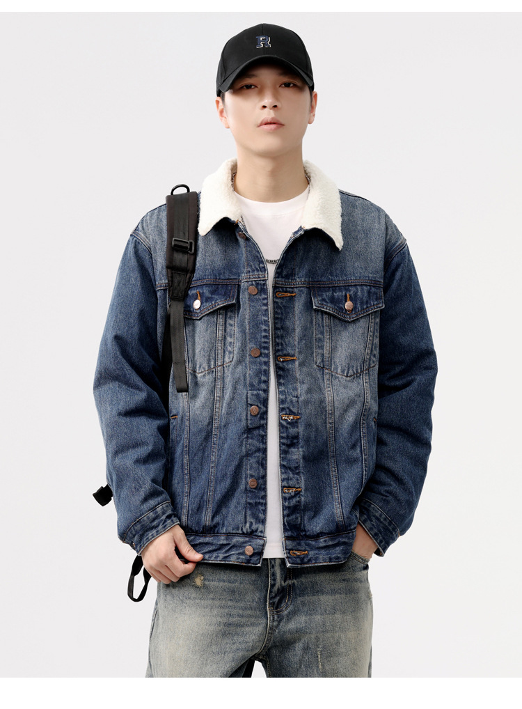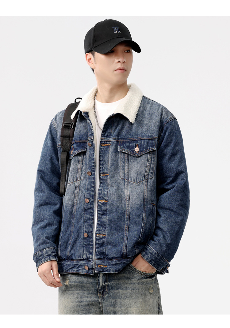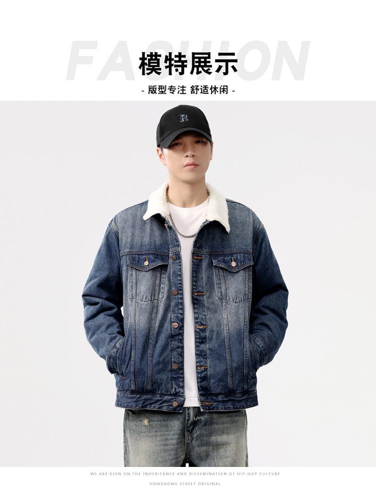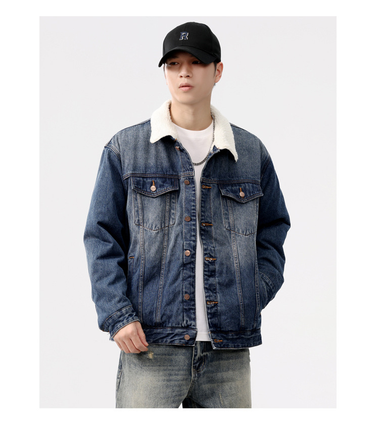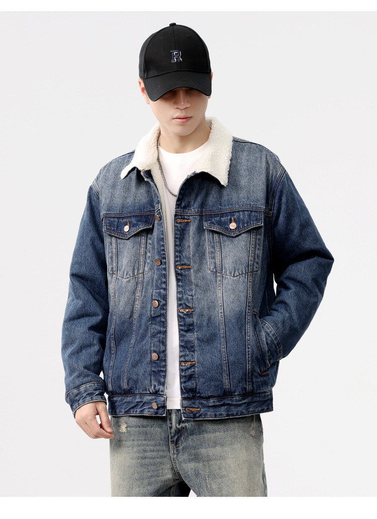 2024 invierno sencillo nostálgico velchillo grueso chaqueta denim hombre estilo de moda joven chaqueta denim cálida
