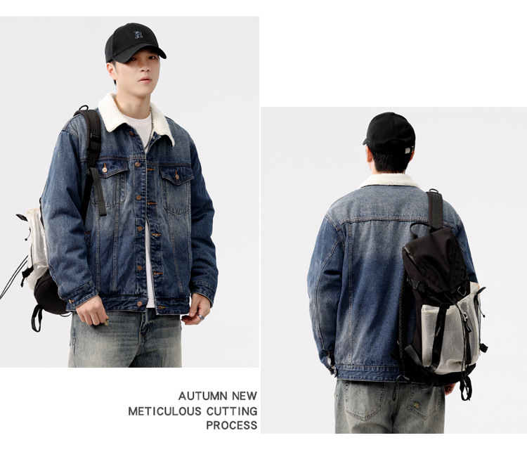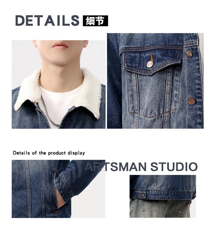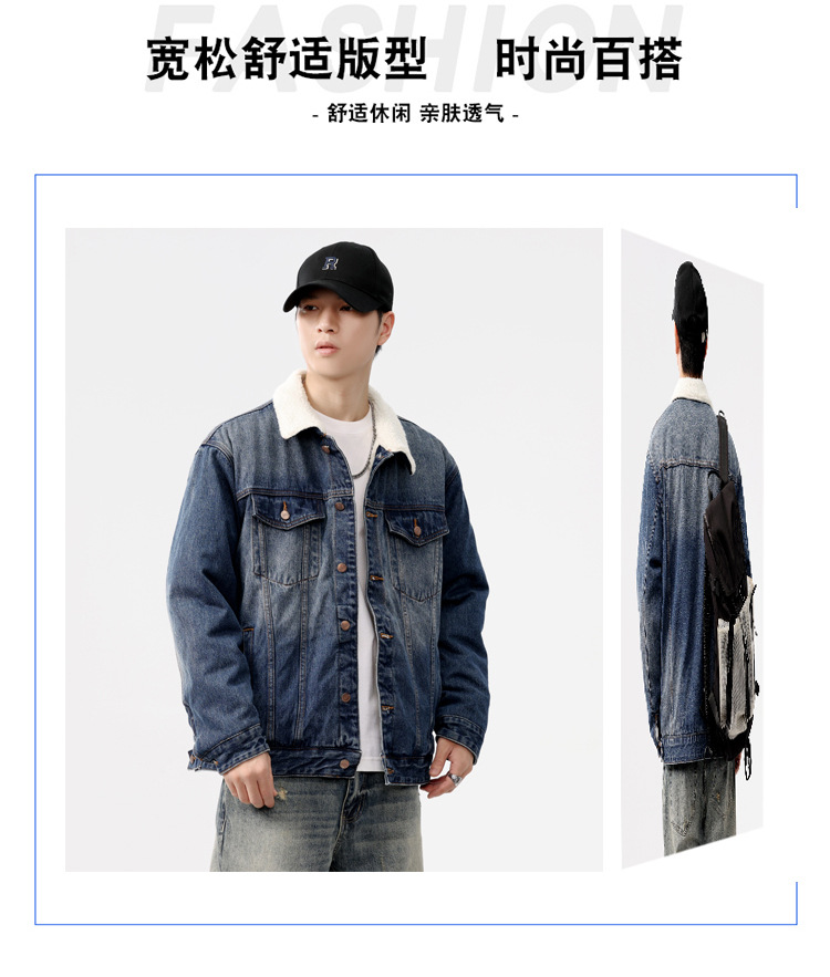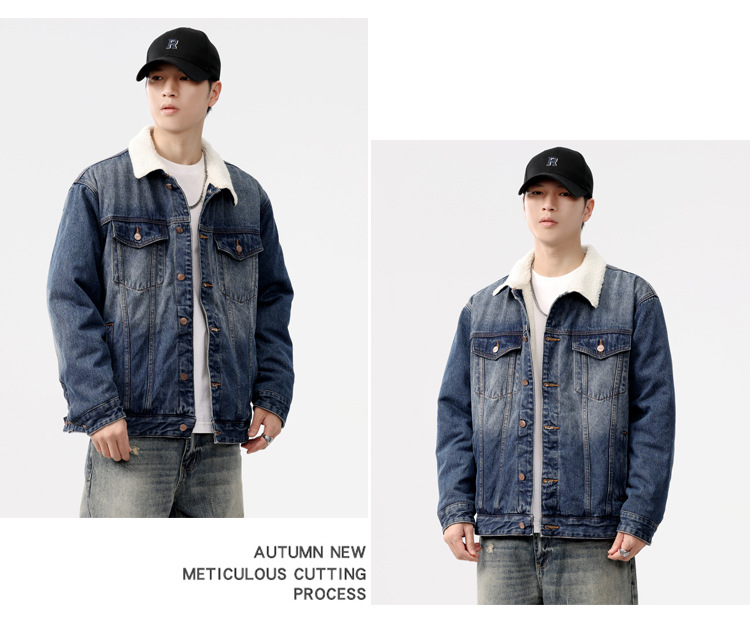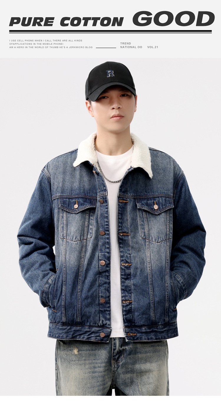 2024 invierno sencillo nostálgico velchillo grueso chaqueta denim hombre estilo de moda joven chaqueta denim cálida