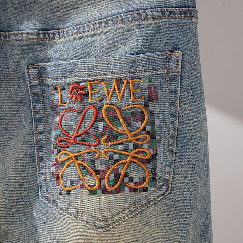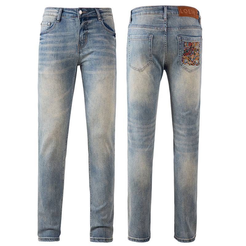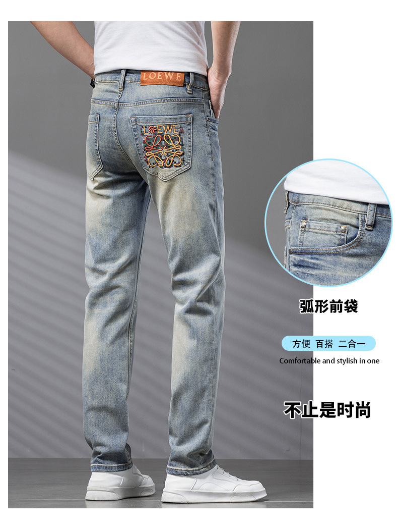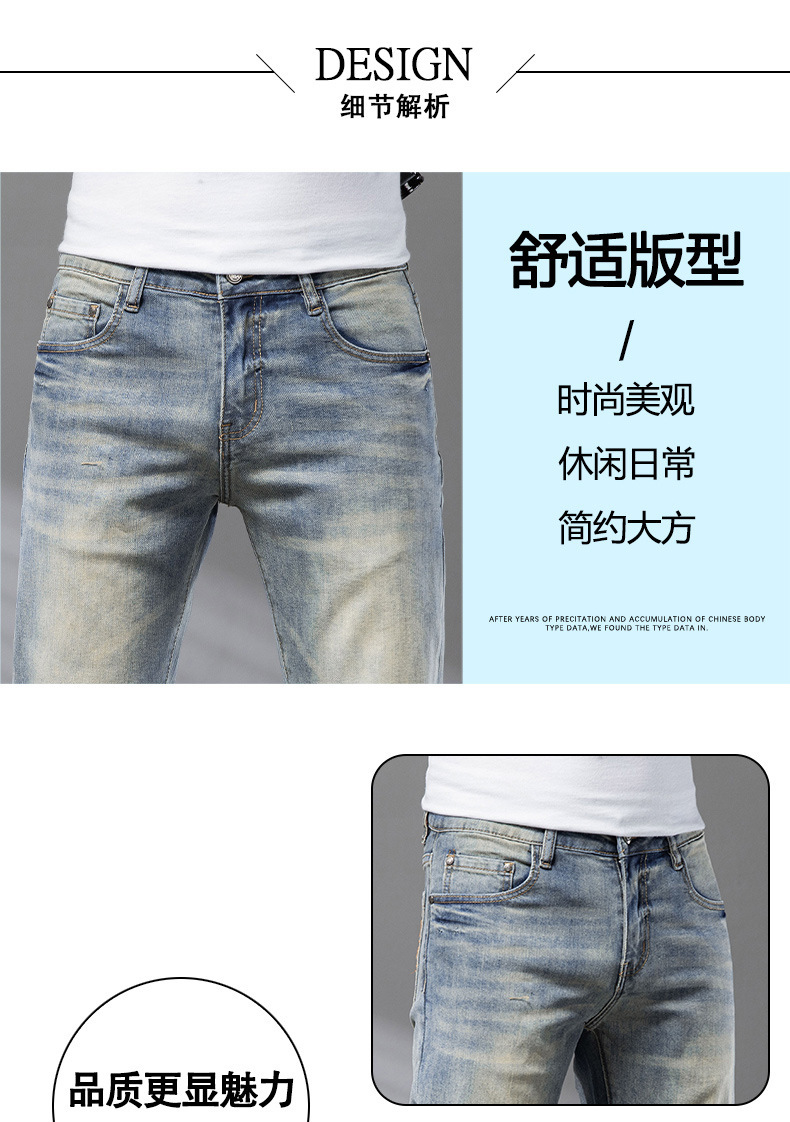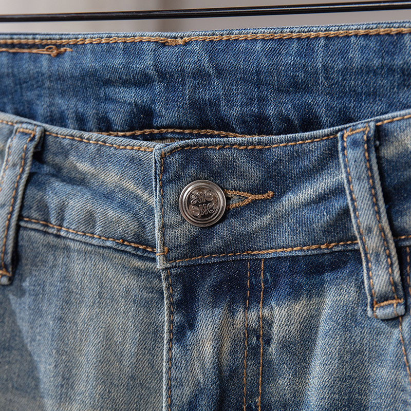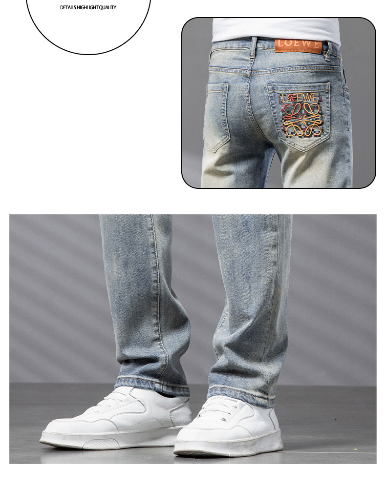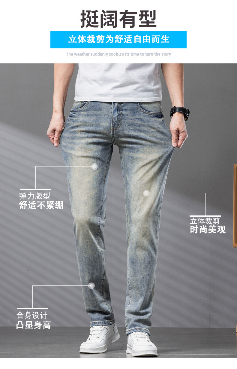 Bordado Mizongtu Jeans de hombre europeo de gama alta, amarillo fangoso pesado, lavado elástico delgado, pantalones de hombre rectos pequeños