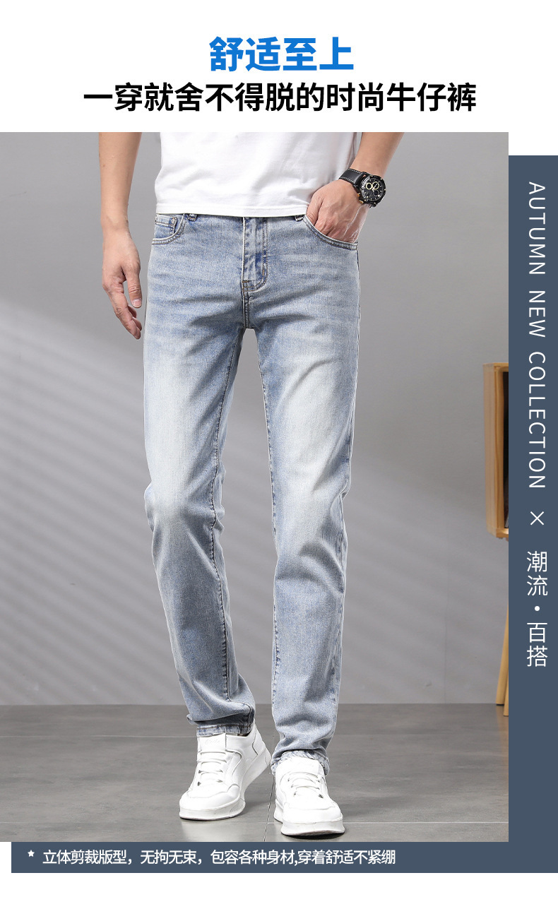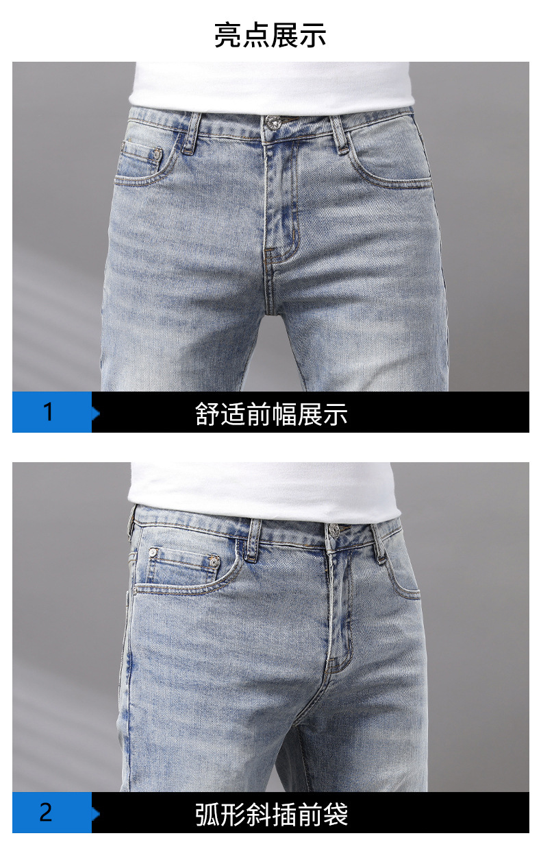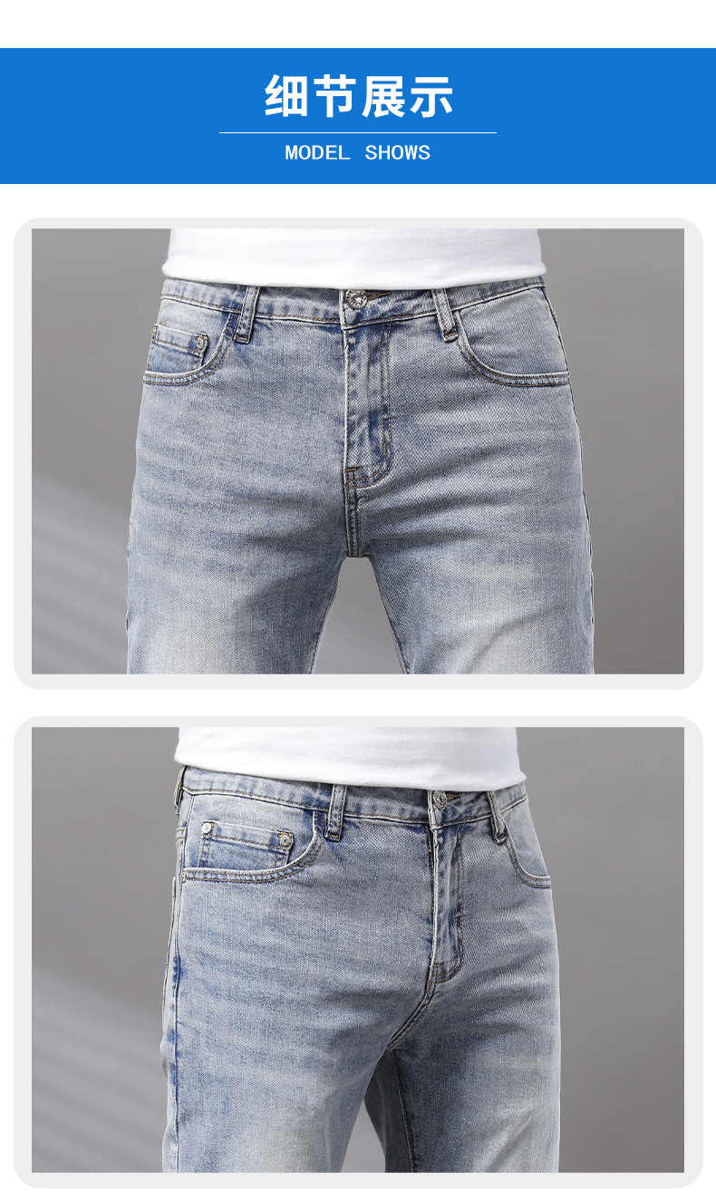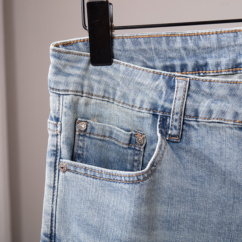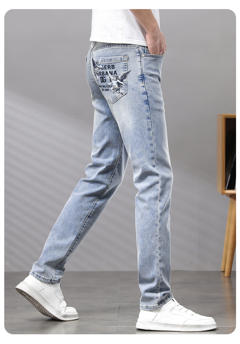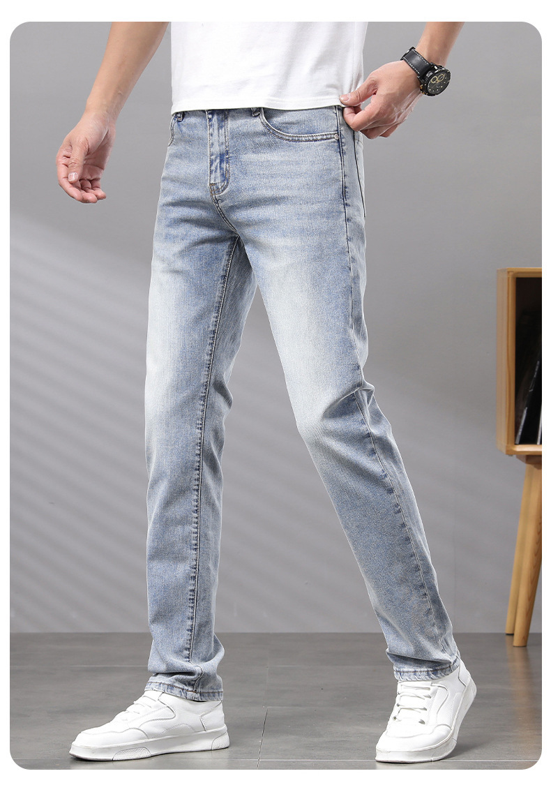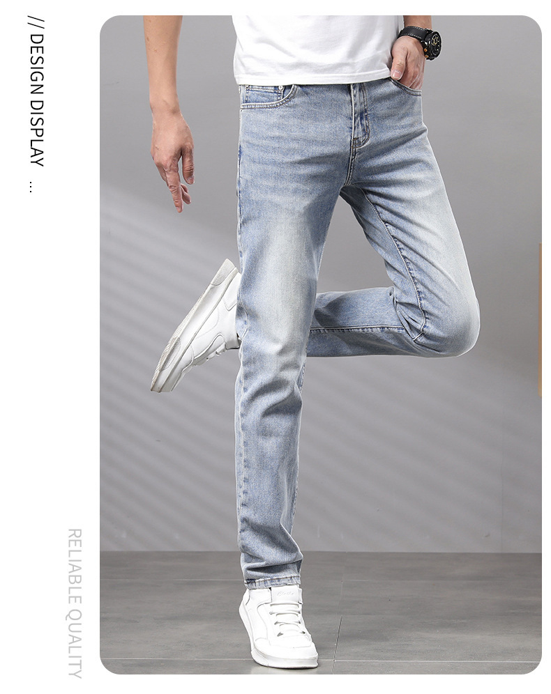 Cupido de alta gama europeas jeans de hombre simple color claro lavado elástico delgado pequeño rectas pantalones casuales de hombre
