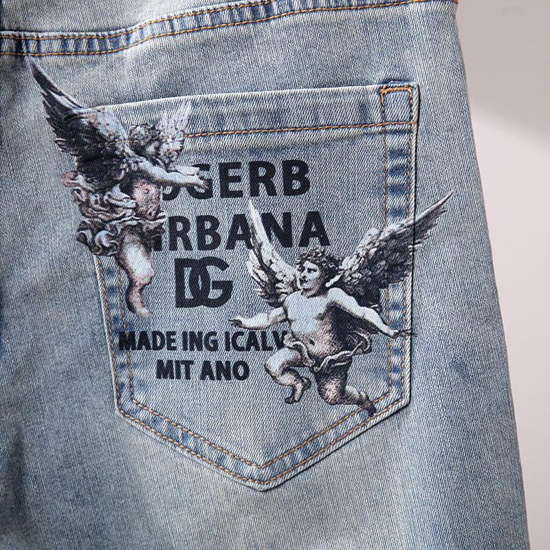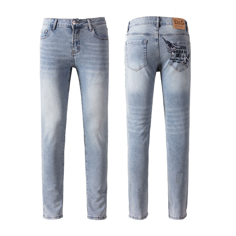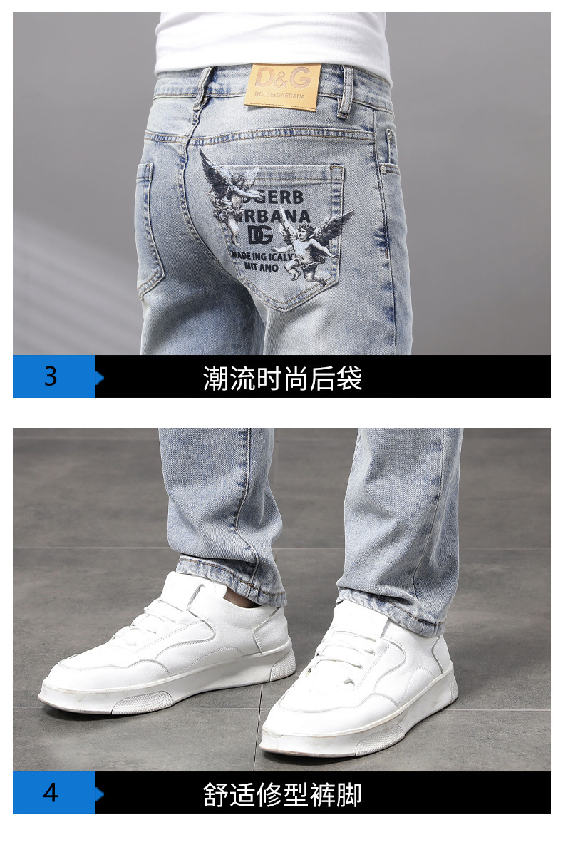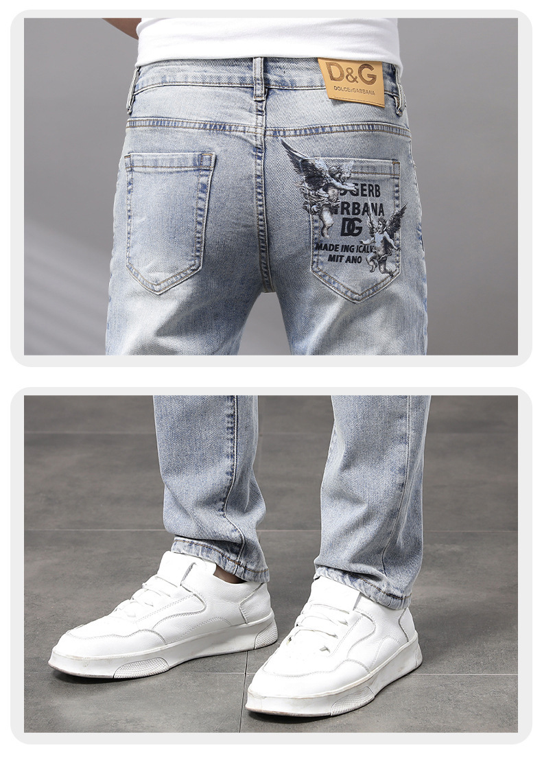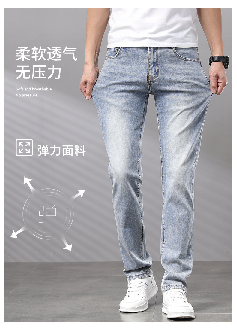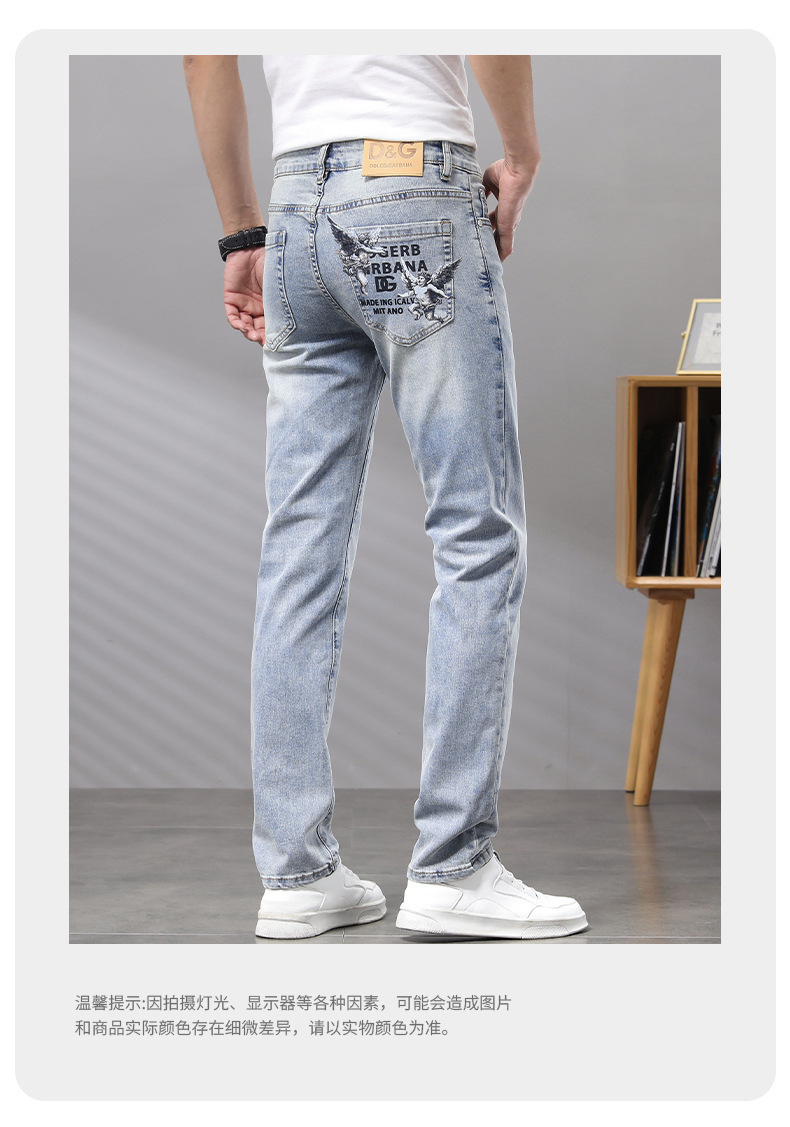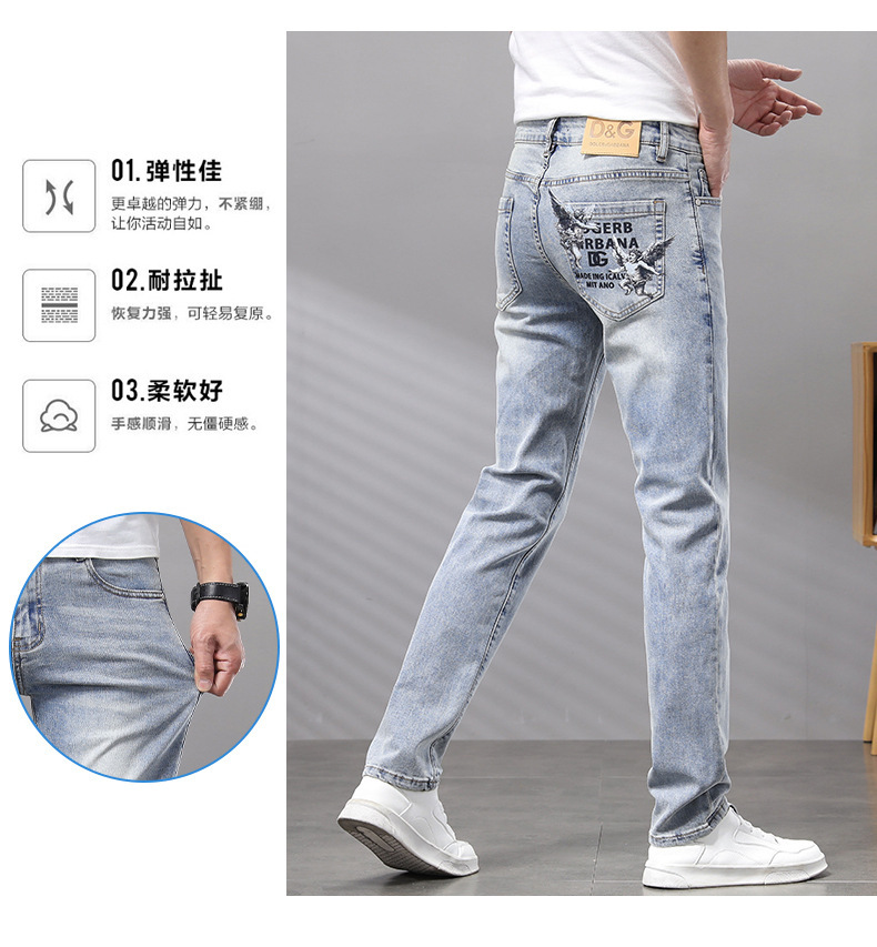 Cupido de alta gama europeas jeans de hombre simple color claro lavado elástico delgado pequeño rectas pantalones casuales de hombre