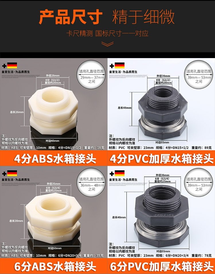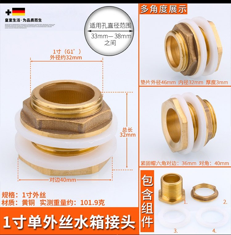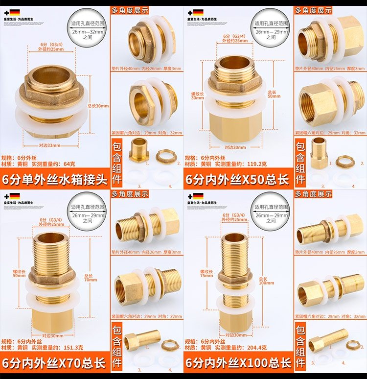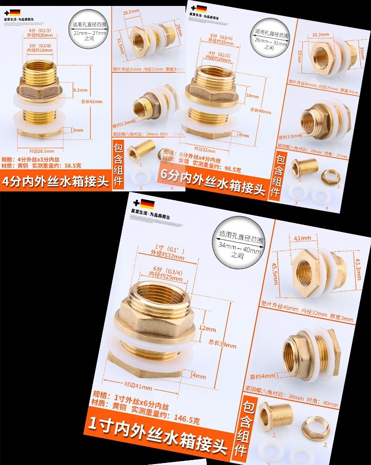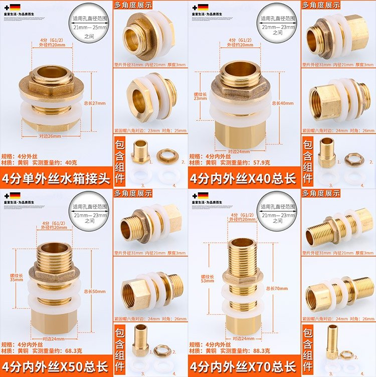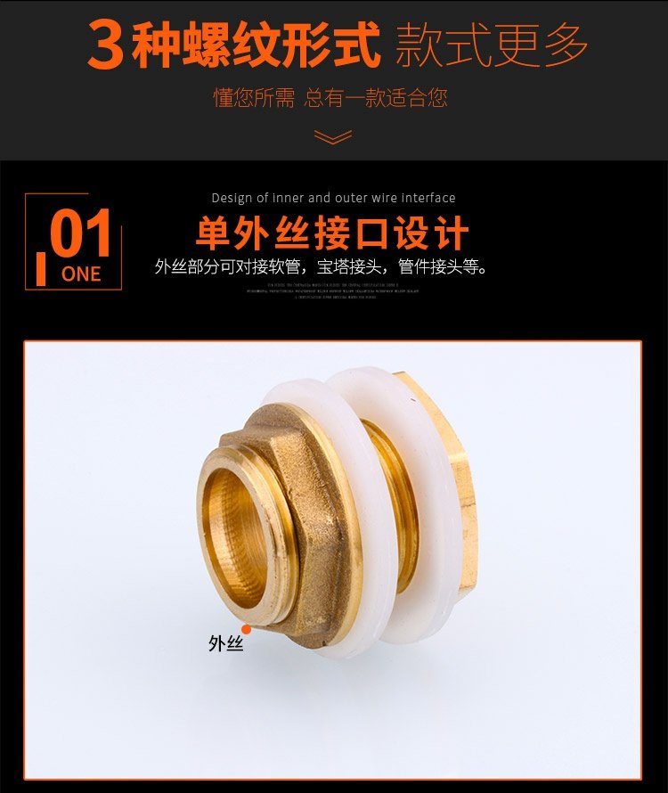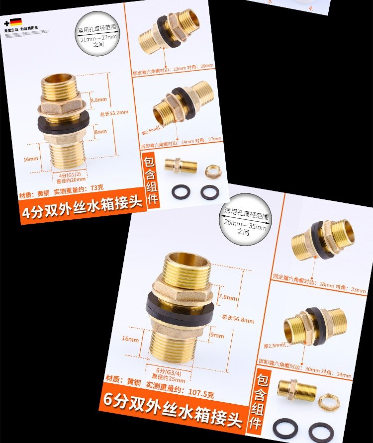 Junta de tanque de agua torre de agua tanque de pescado cubo de agua interfaz de alambre interior y exterior drenaje de cilindro de agua de cobre total 4 puntos 6 puntos accesorios de plástico