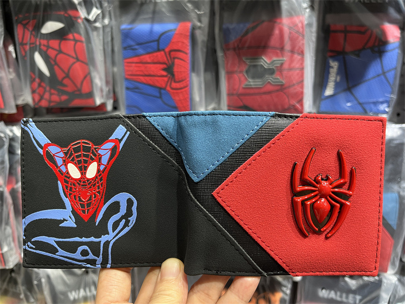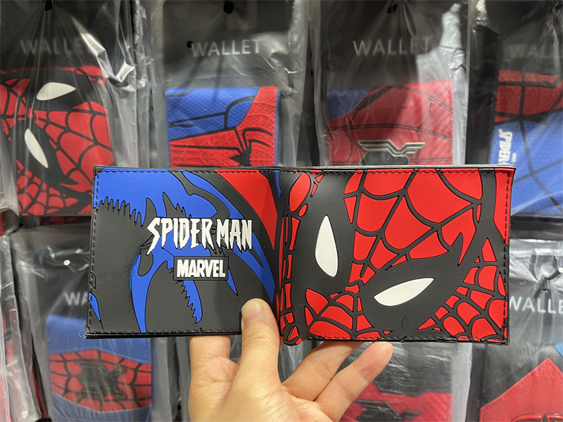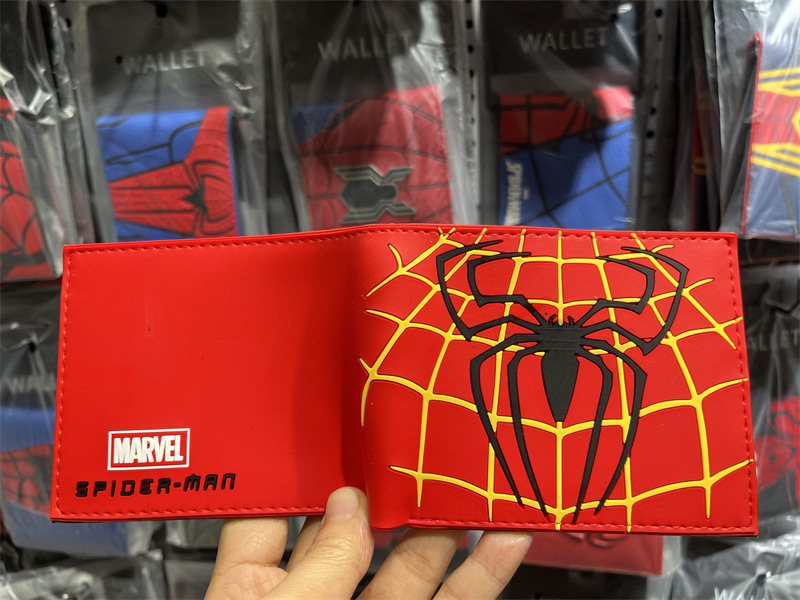 Cartoon Spider-Man niños estudiantes billetera corta para niños PU piel bolso de cambio bolso de mano bolso de tarjetas vengadores