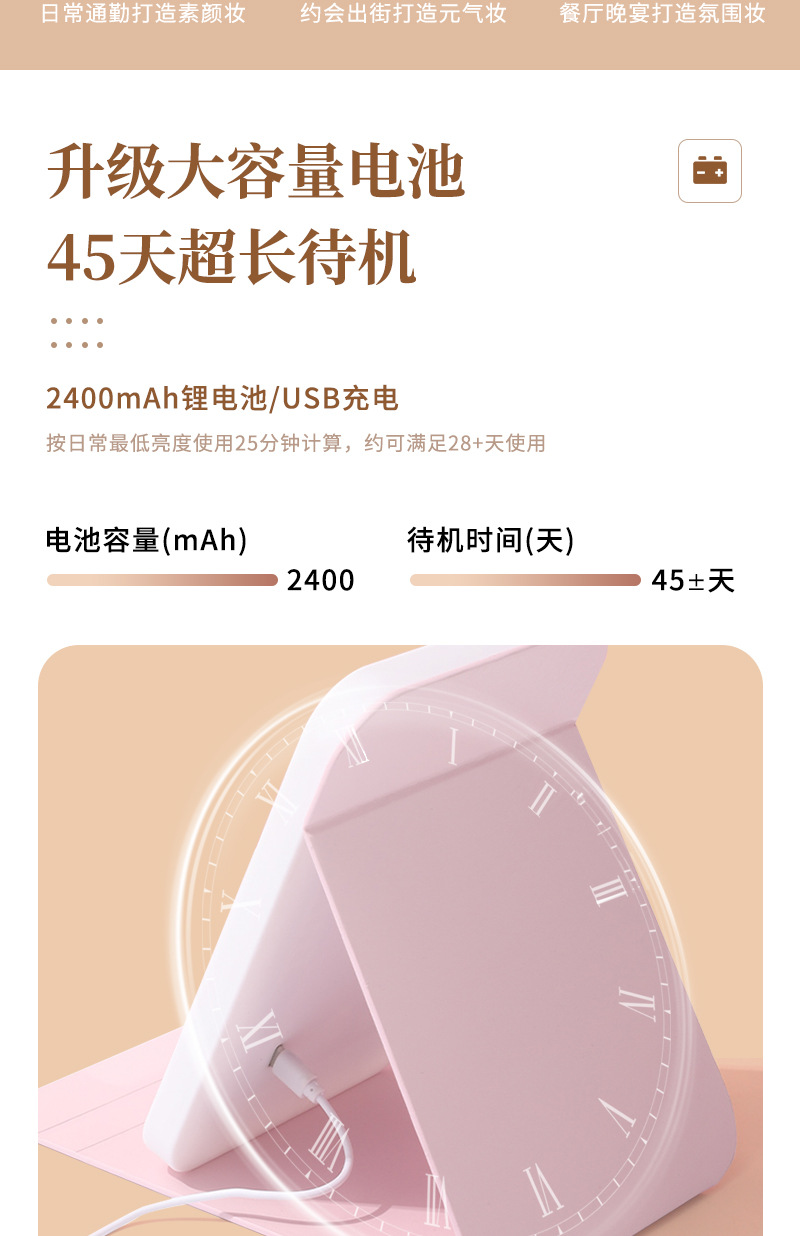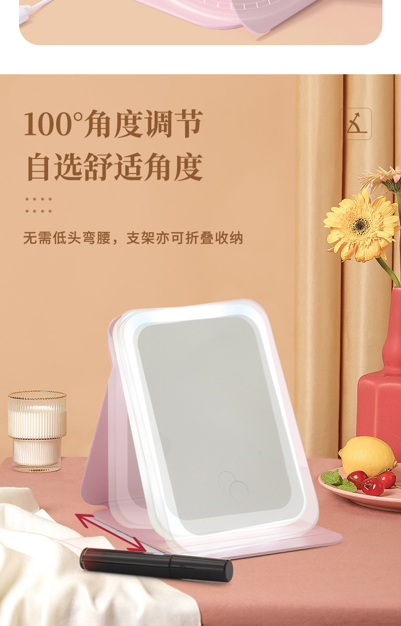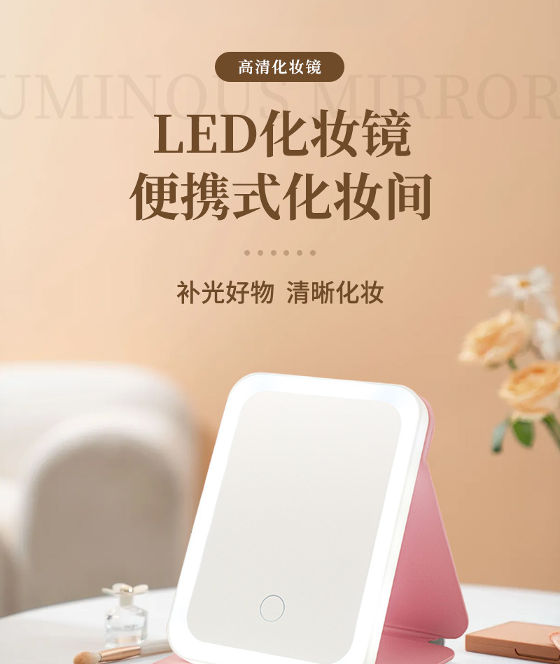 Espejo cosmético LED transfronterizo al por mayor cuadrado plegable recargable espejo femenino espejo portátil de dormitorio