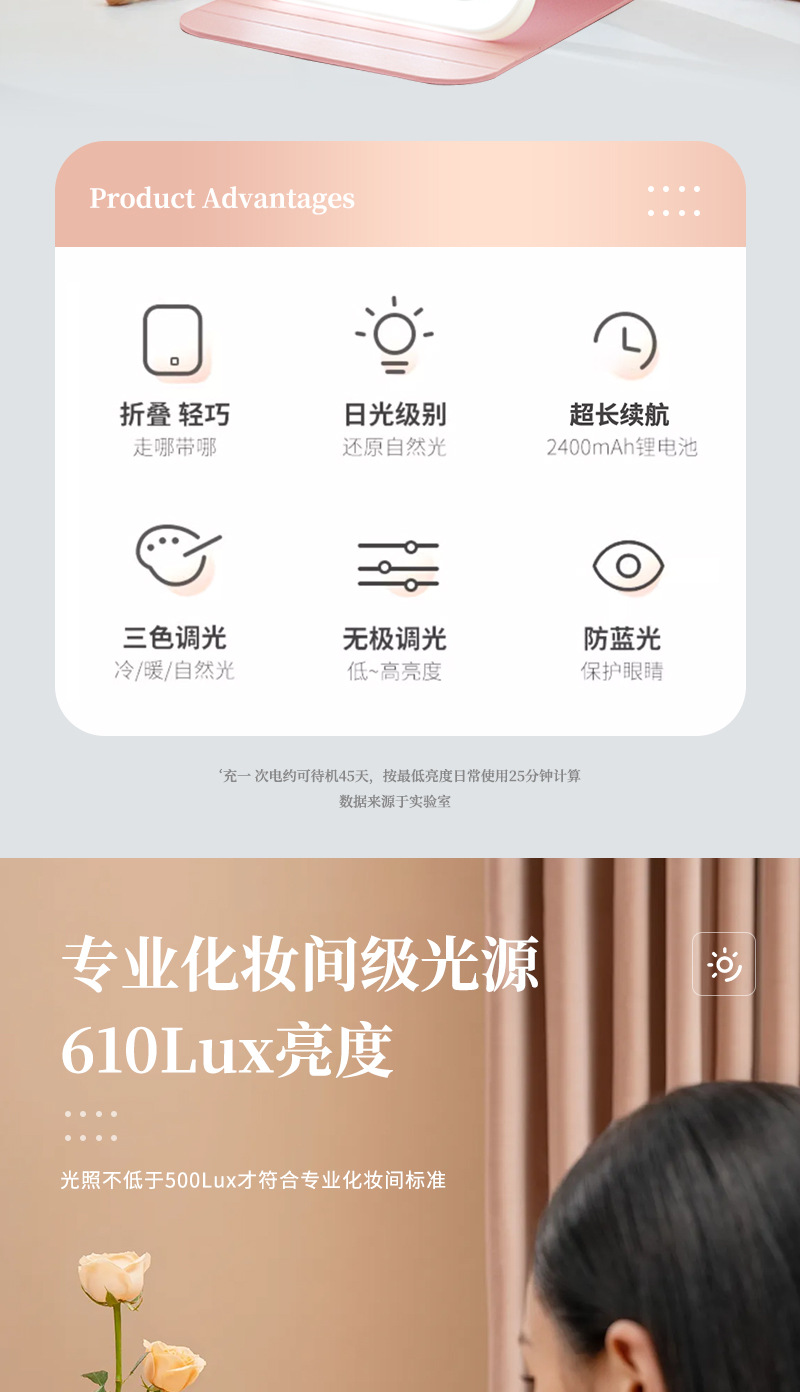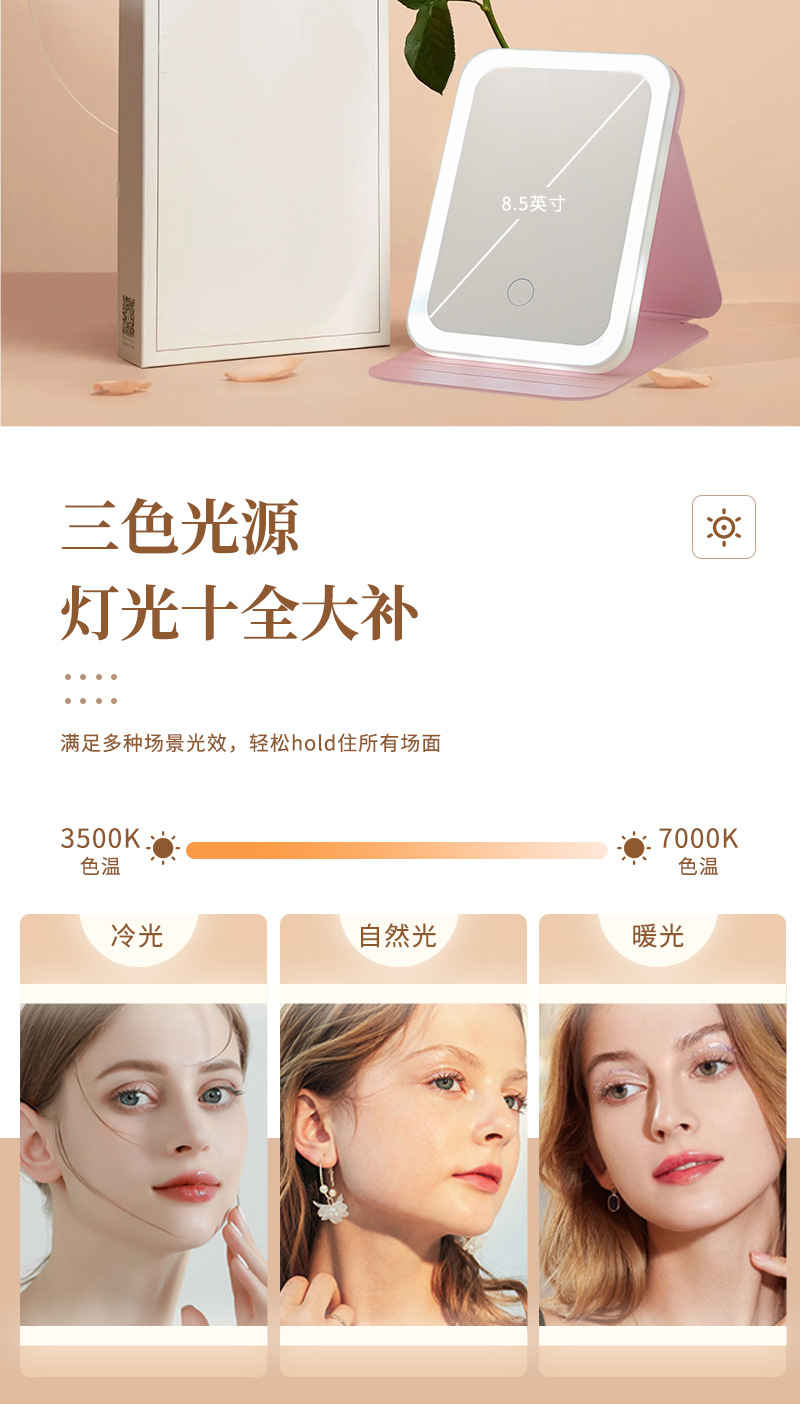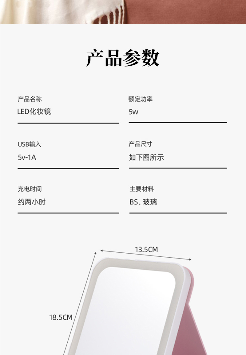| Número de artículo | Espejo de maquillaje LED (plegado rectangular) |