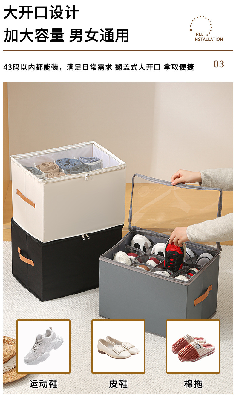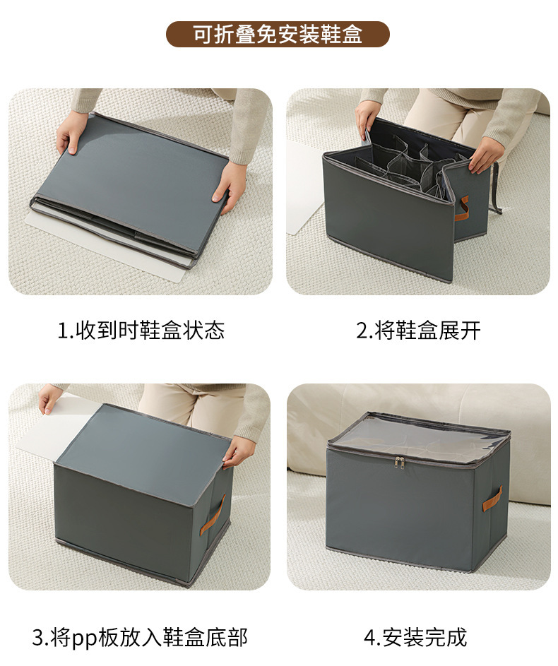 Nuevos productos transfronterizos con cubierta cajas de zapatos plegables multifuncionales a prueba de polvo de gran capacidad tela Oxford de almacenamiento de ropa y zapatos