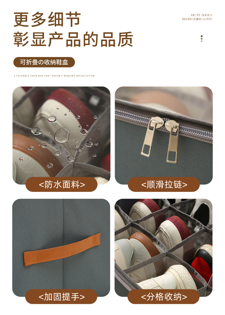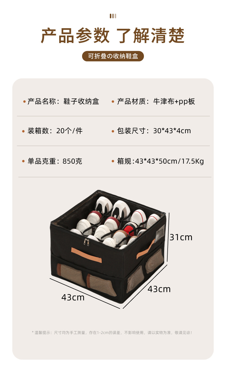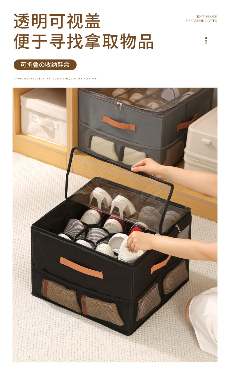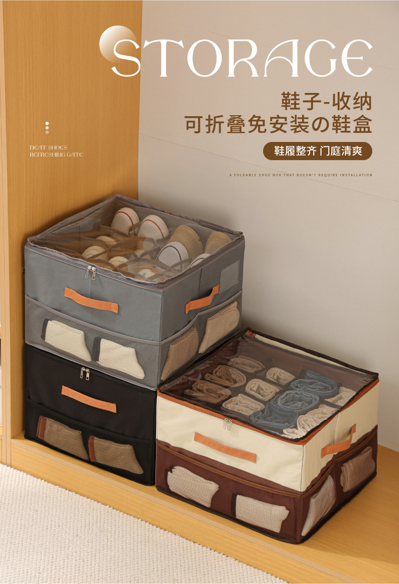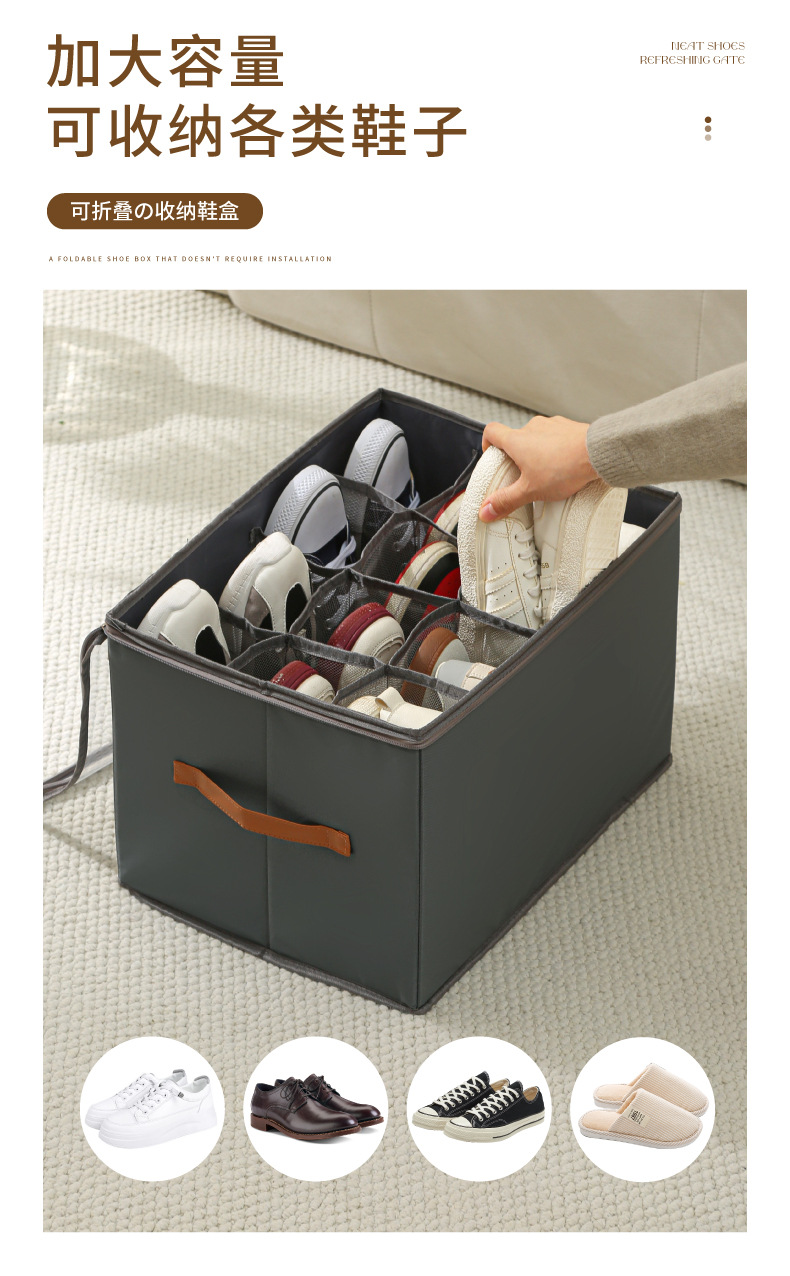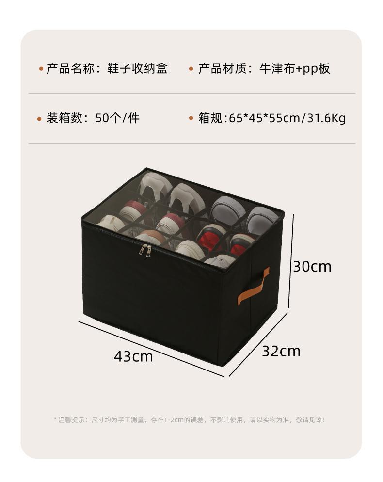 Caja de zapatos de tela Oxford transfronteriza con tapa Caja de almacenamiento de zapatos de moda dividida para el hogar Armario Caja de almacenamiento de zapatos plegable a prueba de polvo