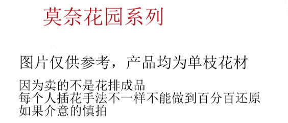 | Colores | Jardín Monet (305 flores),Jardín Monet (300 flores),Cascada Monet (205 flores),Monet Blue (200 flores),Jardín secreto de Monet (150 flores),Jardín secreto (100 flores),Verde 70cm Lu hierba,Persia de hoja larga verde,Rosa desnuda rosa diamante de tres cabezas,Champagne rosa,Amapola naranja,Delfón azul,Peonía de hibisco rosa,Pequeña flor silvestre amarilla,Tulipán de brownie rosa claro,Phalaenopsis 3D rosa oscuro,Phalaenopsis 3D púrpura claro,Violeta púrpura,Champagne diamante rosa,Ficus de piedra verde,Crisantemo de la rueda blanca,Tulip púrpura,Hoja de alocasia verde,Hoja de alocasia blanca,Delfón rosa,Champagne trigo sarraceno lágrimas de los amantes,Hortensia de madera púrpura,Peonía de hibisco champán,Rosa 7 cabeza vintage rosa,Delfón blanco,Eustoma de cuatro cabezas blanco y verde,Pequeña flor morada,Eustoma rosa de cuatro cabezas,Hierba negra azul,Delfinita amarilla,Crisantemo rosa de otoño,Princesa blanca Nelly Ju,Bambú del sur,Amapolas amarillas,Amapola azul violeta,Princesa rosa Nelly,Delfinita champán,Rosa de diamante blanco de 3 cabezas,Rosa de diamante púrpura 3 cabezas,Rosa de diamante de 3 cabezas púrpura claro,Azul 3 cabezas diamante rosa,Margarita amarilla,Lulian blanco lechoso,Loto rosa claro,Hortensia de madera blanca,Hortensia de madera de jardín verde,Hortensia de madera de jardín azul,Hortensia de madera de jardín rosa,Hortensia de madera de jardín champán,Princesa amarilla Nelly Ju,Princesa café marrón Nelly,Madera borracha |
