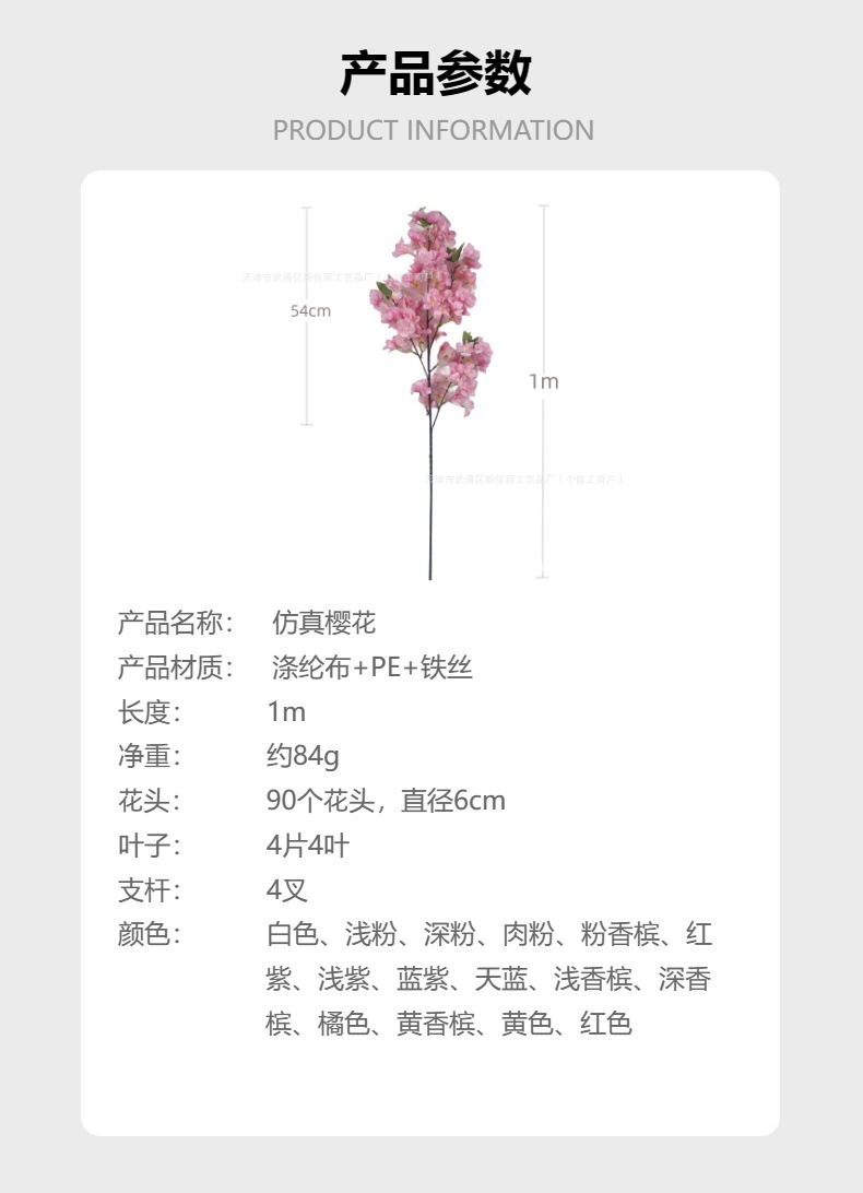 Simulación de flor de cerezo flor falsa única, decoración ecológica, diseño de bodas, guía de carreteras, centro comercial, sala de exposiciones, paisaje, arreglos florales