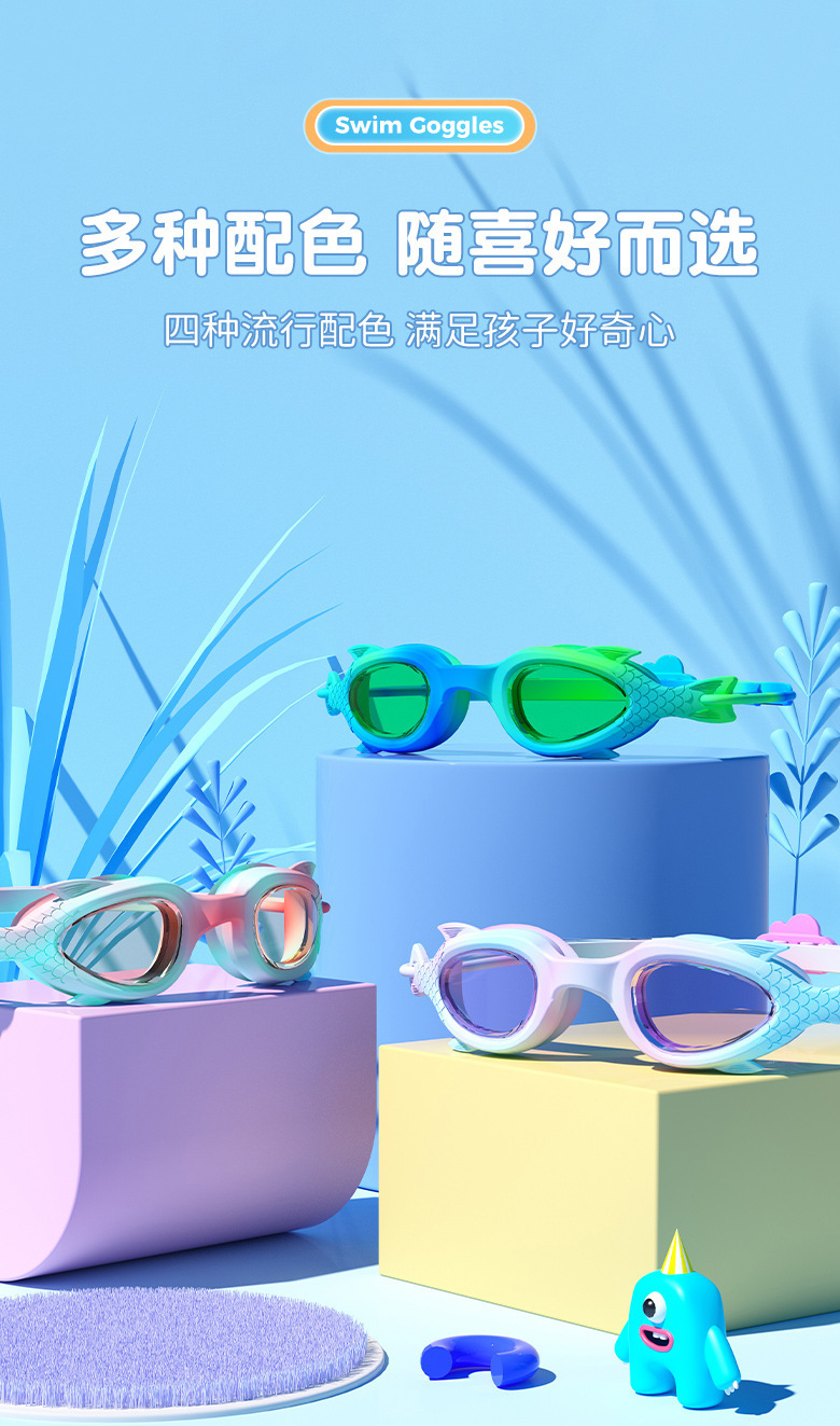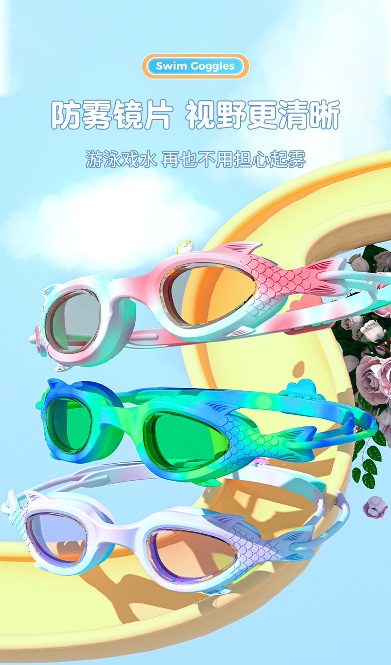 Gafas de natación para niños Gafas de marco pequeño antivaho para niños y niñas Entrenamiento de natación Buceo en forma de pez Equipo profesional impermeable HD