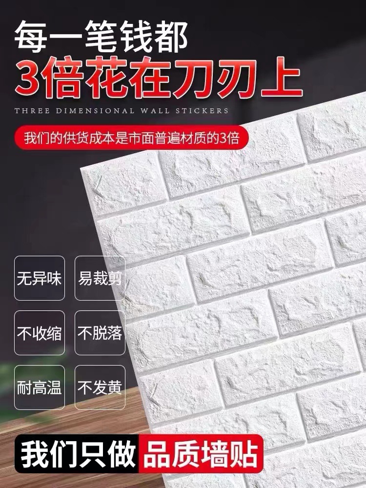 Suministro directo de fábrica papel tapiz autoadhesivo 3D espuma XPE papel tapiz de pared con patrón de ladrillo TV fondo adhesivo a prueba de humedad
