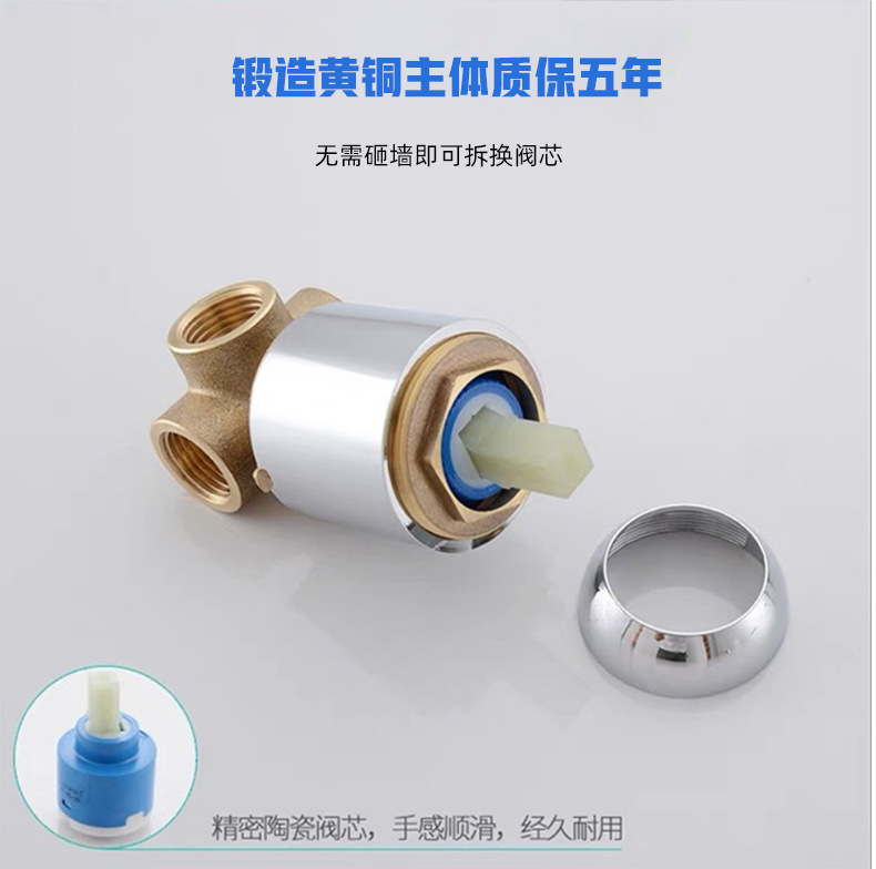 Cobre oculto de tres vías montado en la pared grifo de la ducha incrustado ducha caliente y fría válvula mezcladora Baño proyecto hotelero