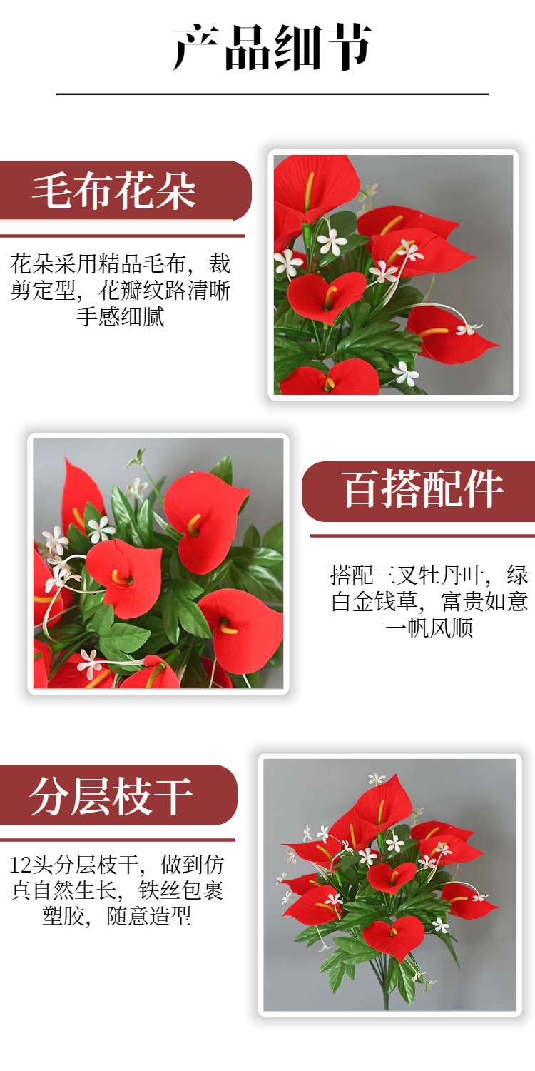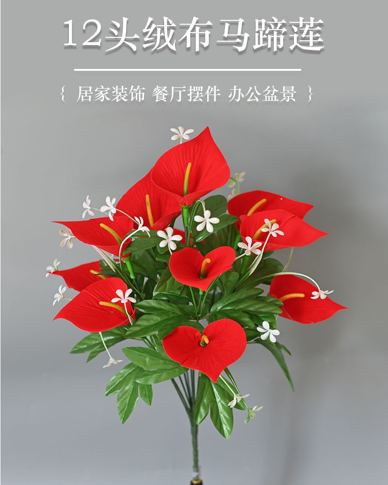 Fábrica fuente al por mayor 12 flores de terciopelo imitación de flores de hippopotamus decoración del hogar escenario de banquete de terciopelo imitación ramo de flores