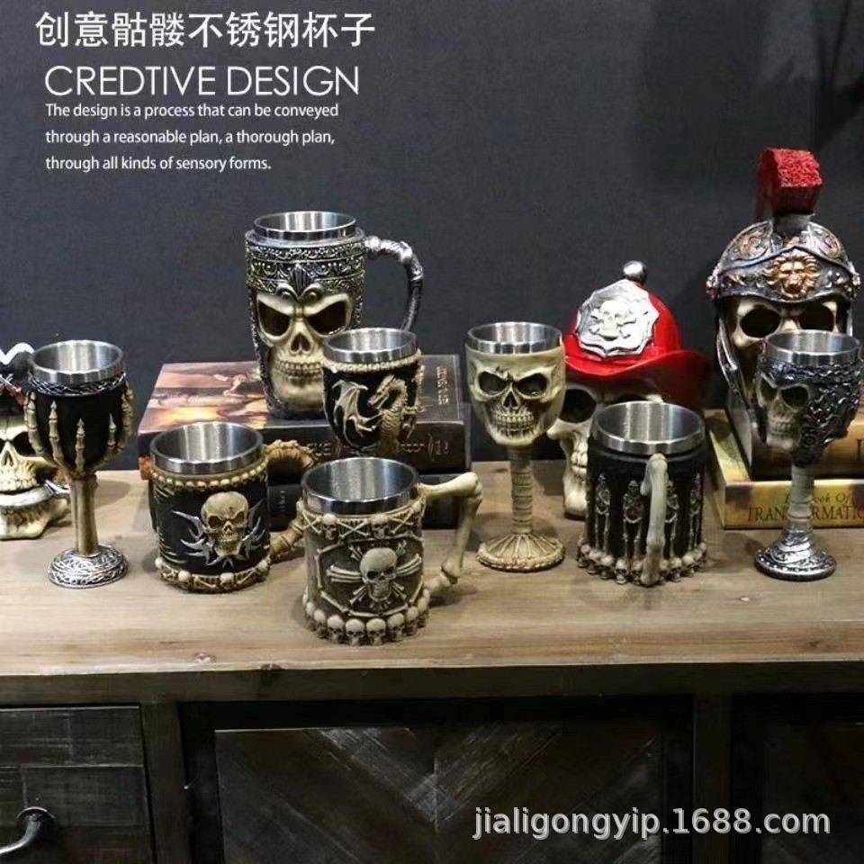Rosa personalidad copa de acero inoxidable en forma de calavera taza de agua regalo de Halloween copa de vino divertida decoración personalizada