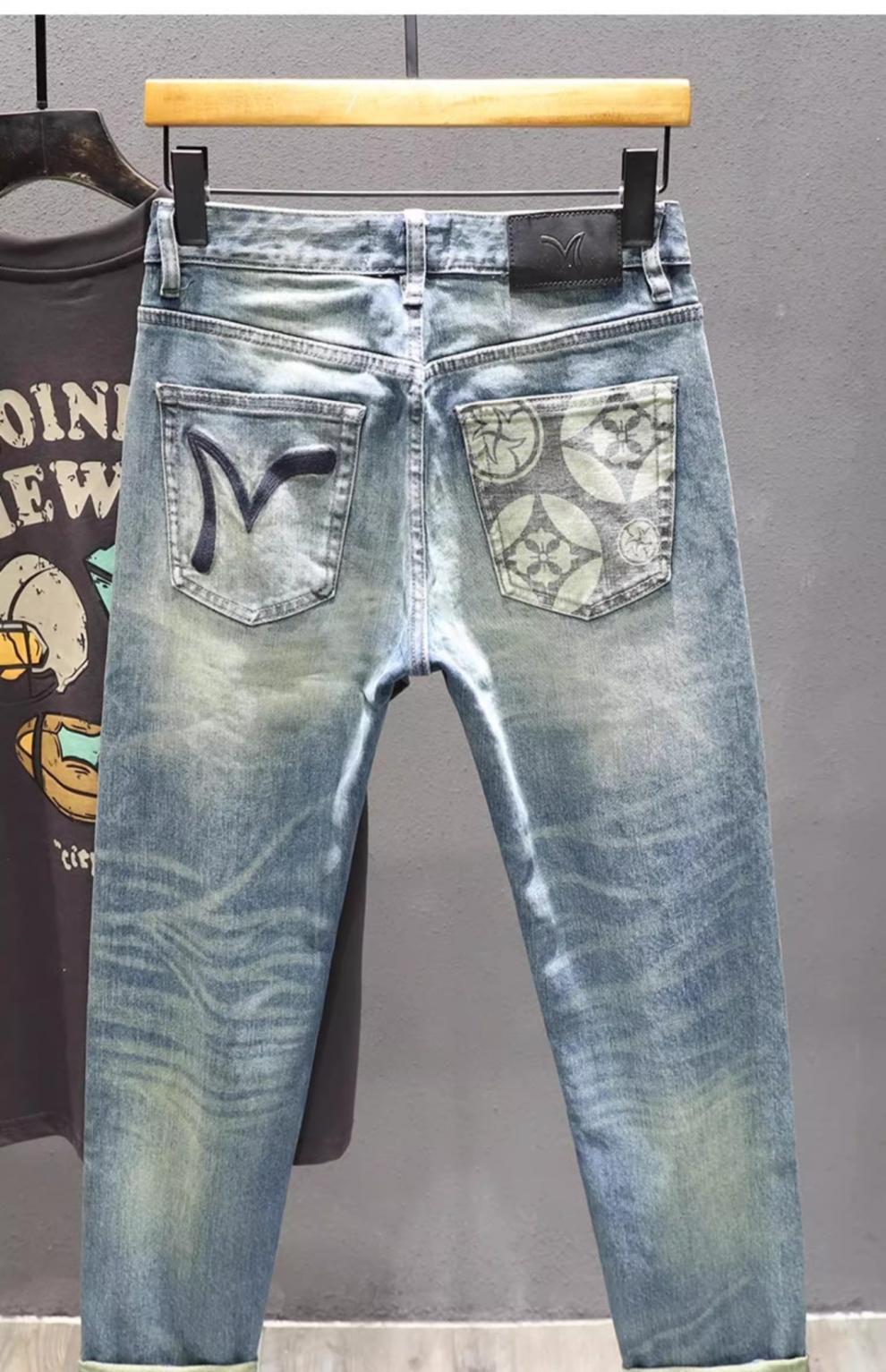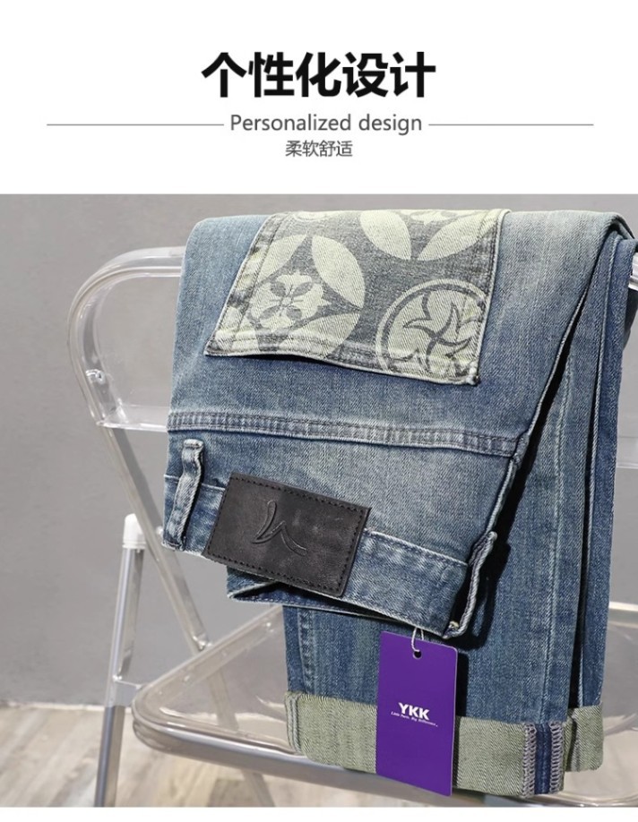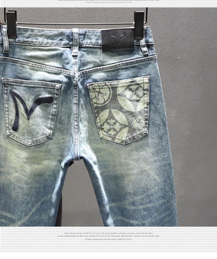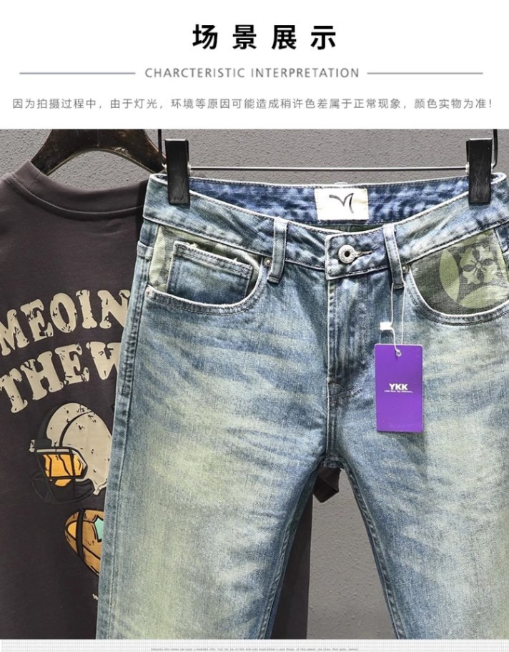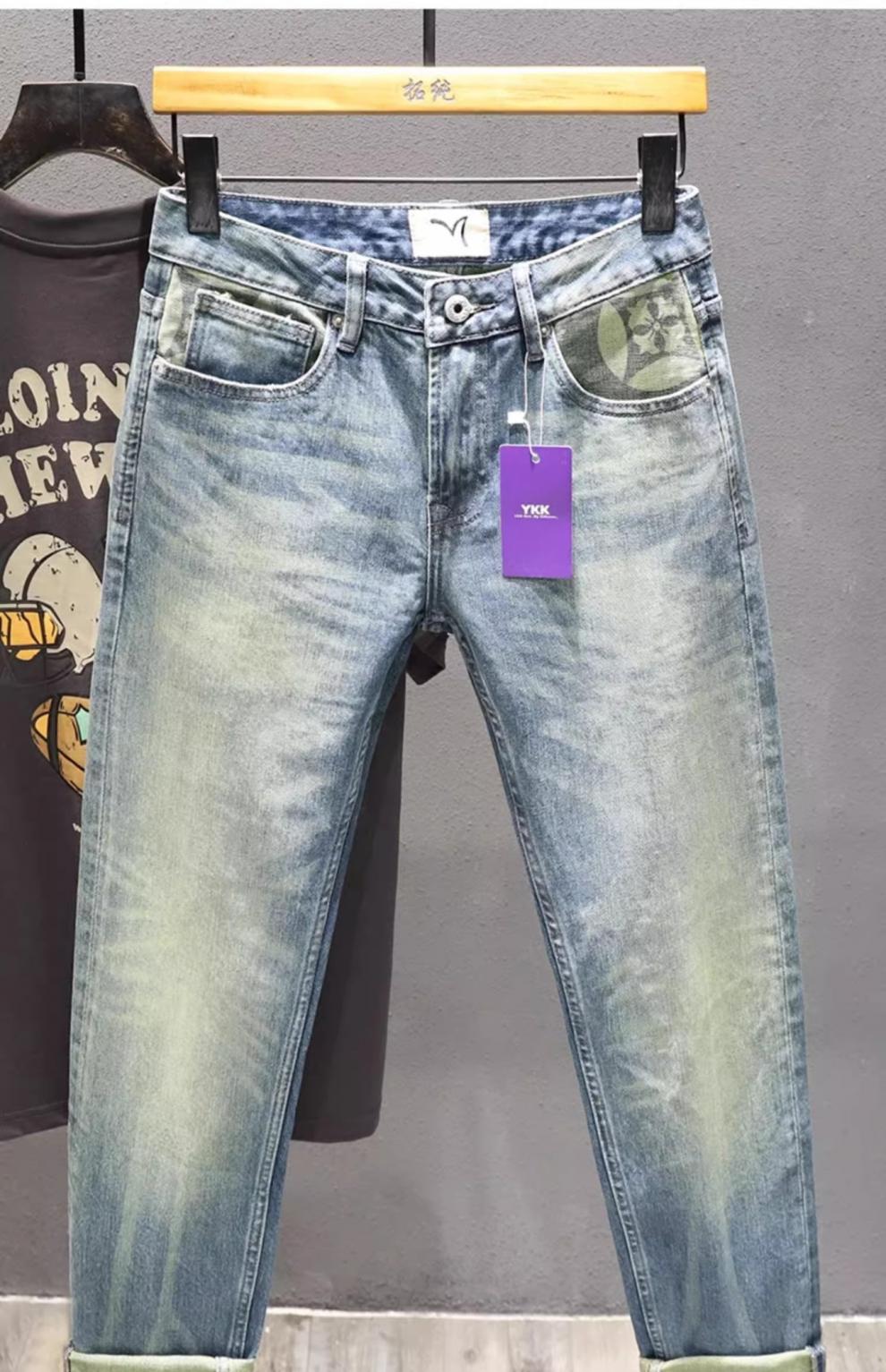 Vaqueros azul claro de marca de moda de alta gama, pantalones ajustados para hombres, pantalones elásticos, pantalones de otoño de año nuevo 2024