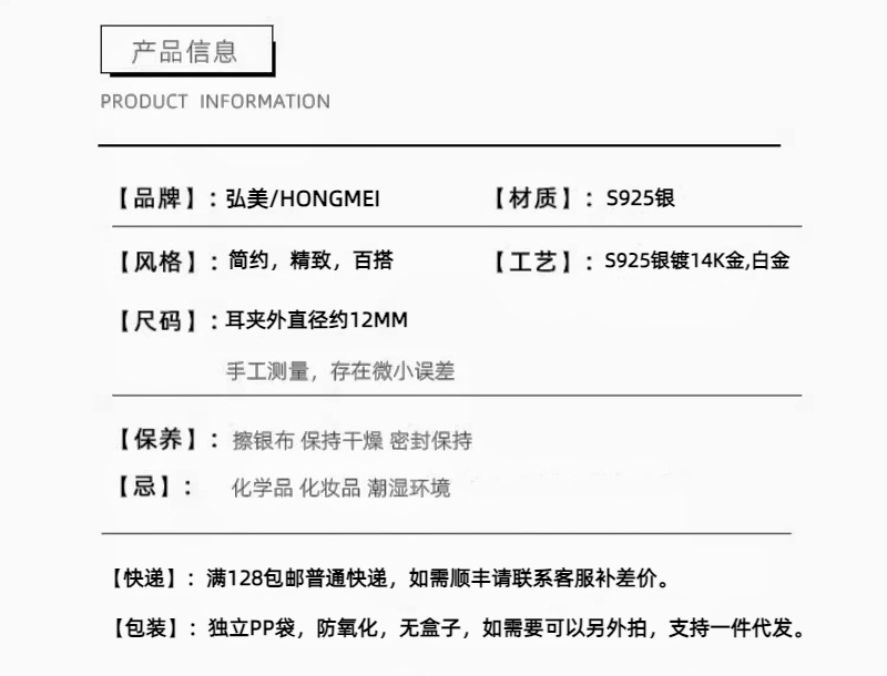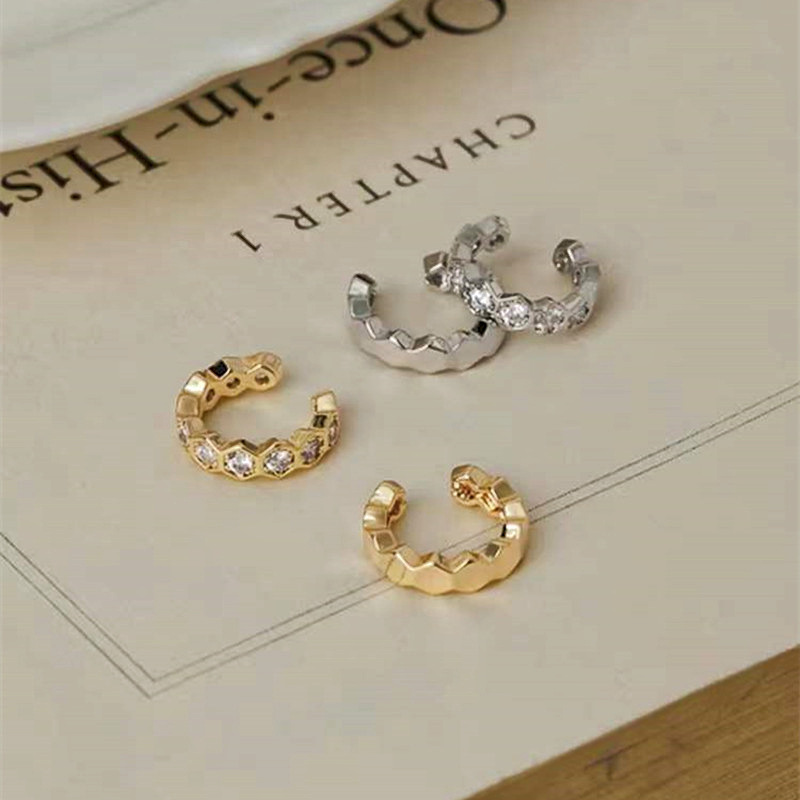 S925 platado en plata 14K diseño de panal de orejas simple sin agujeros de orejas viento frío exquisito ins orejas asimétricas