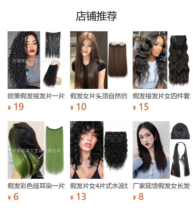 Europeos y estadounidenses extensiones de cabello de cabello para mujeres cabello largo siete piezas BB clip clip fibra química cabello largo cabello recto extensiones de cabello al por mayor