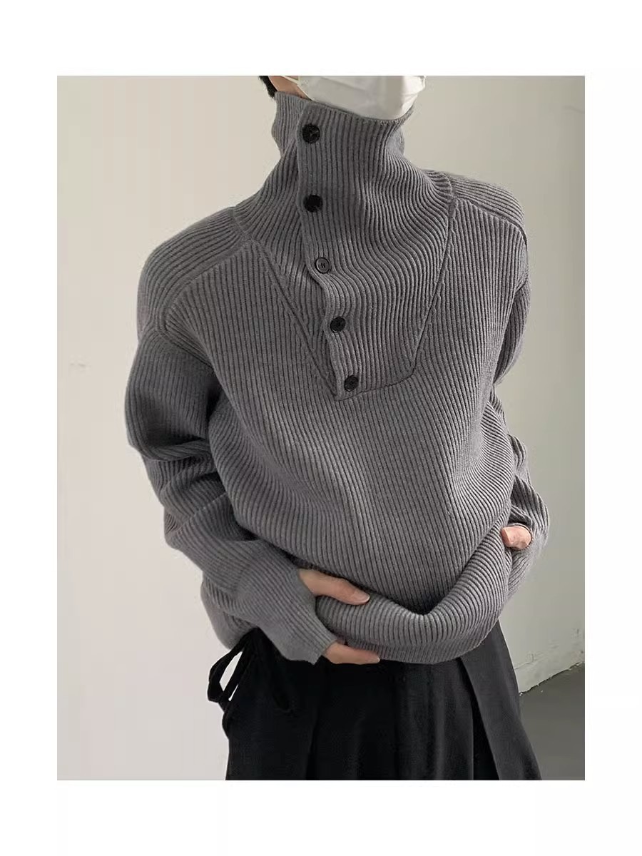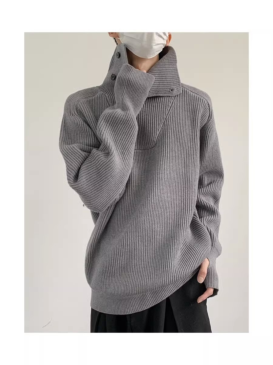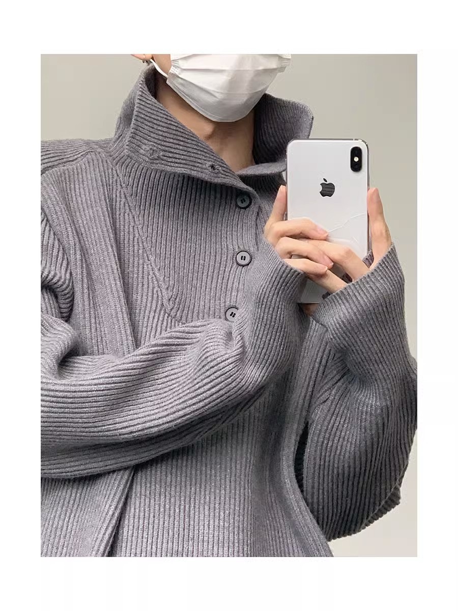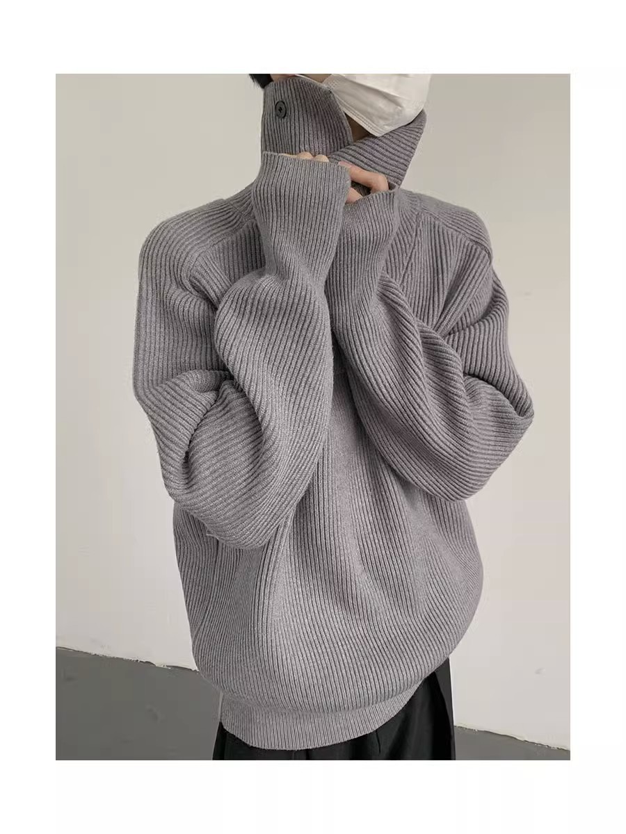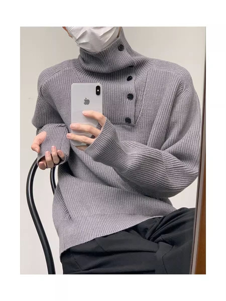 Botón estilo coreano suave textura glutinosa medio suéter de cuello alto de los hombres de alto grado de otoño e invierno flojo perezoso suéter abrigo de moda