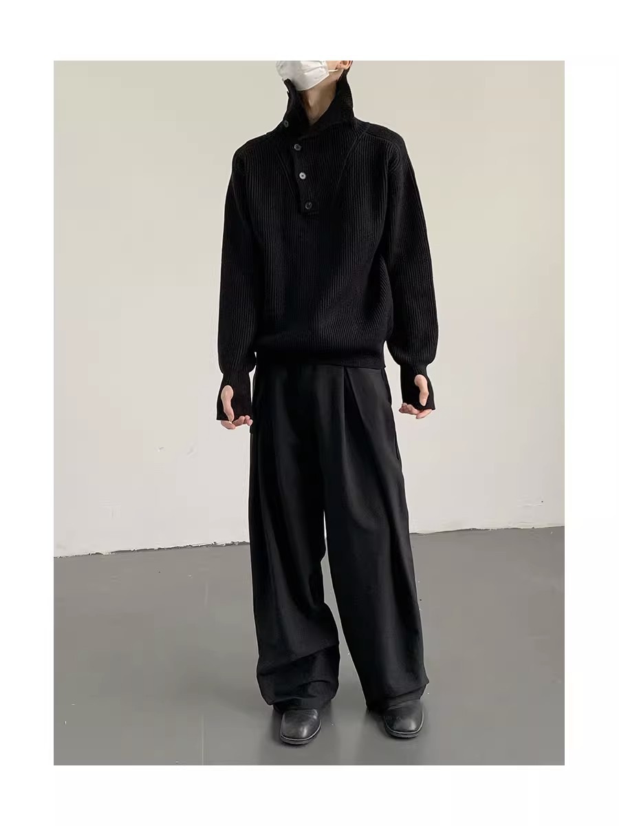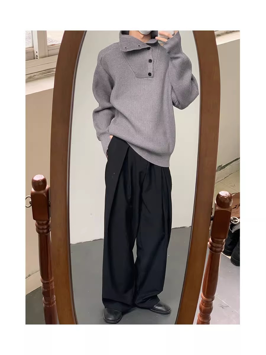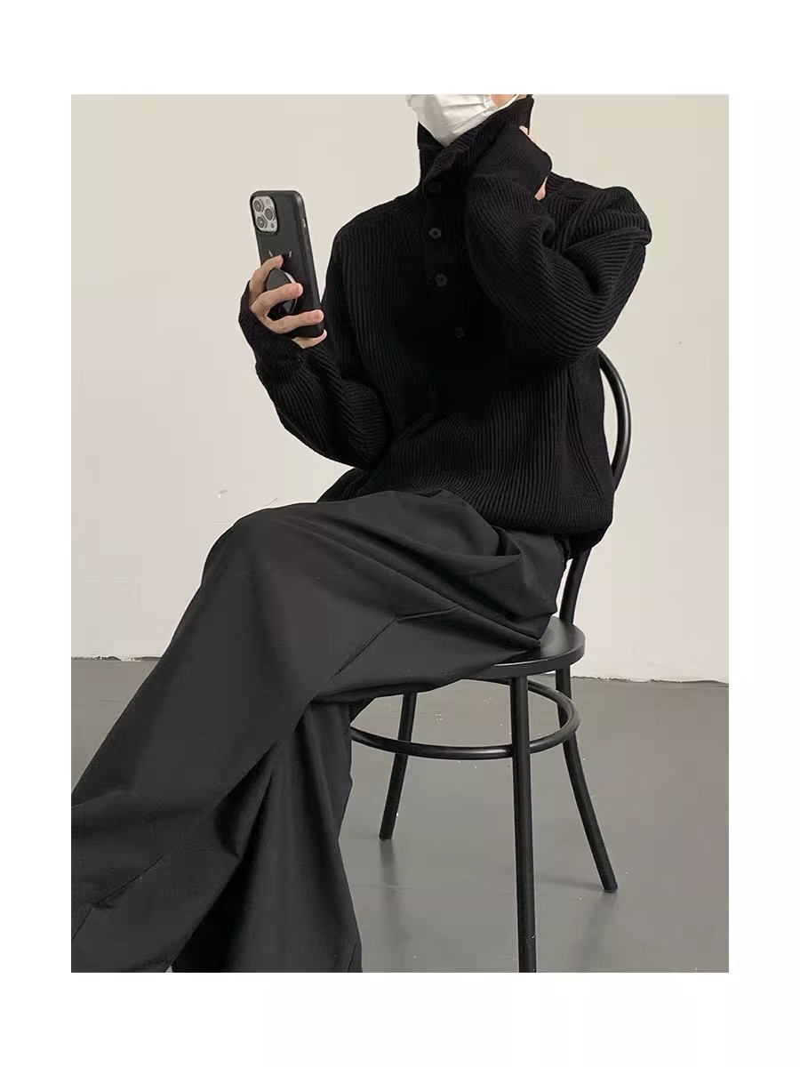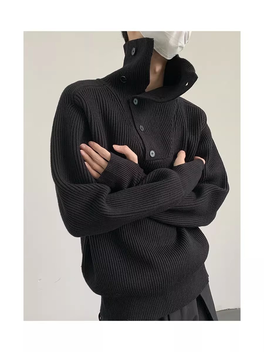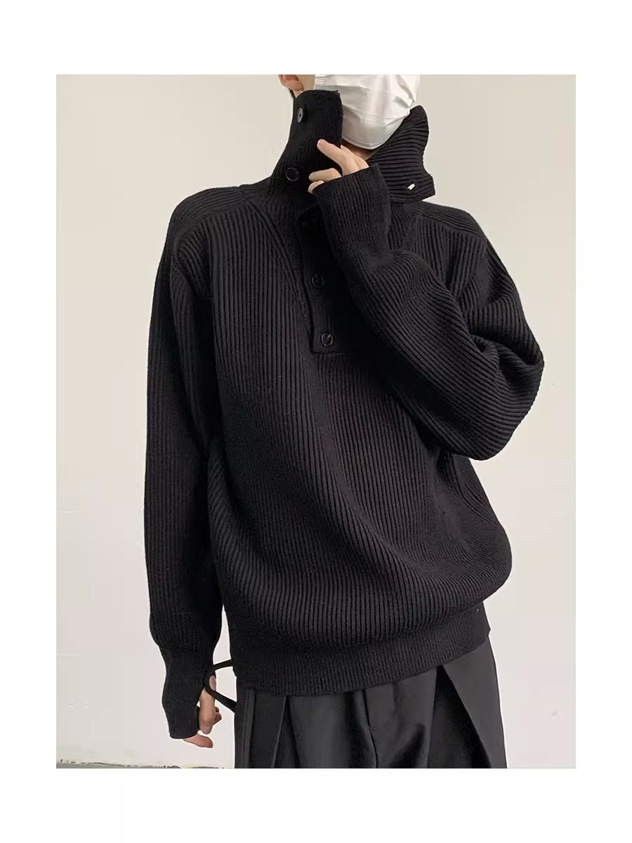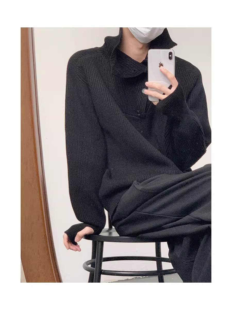 Botón estilo coreano suave textura glutinosa medio suéter de cuello alto de los hombres de alto grado de otoño e invierno flojo perezoso suéter abrigo de moda
