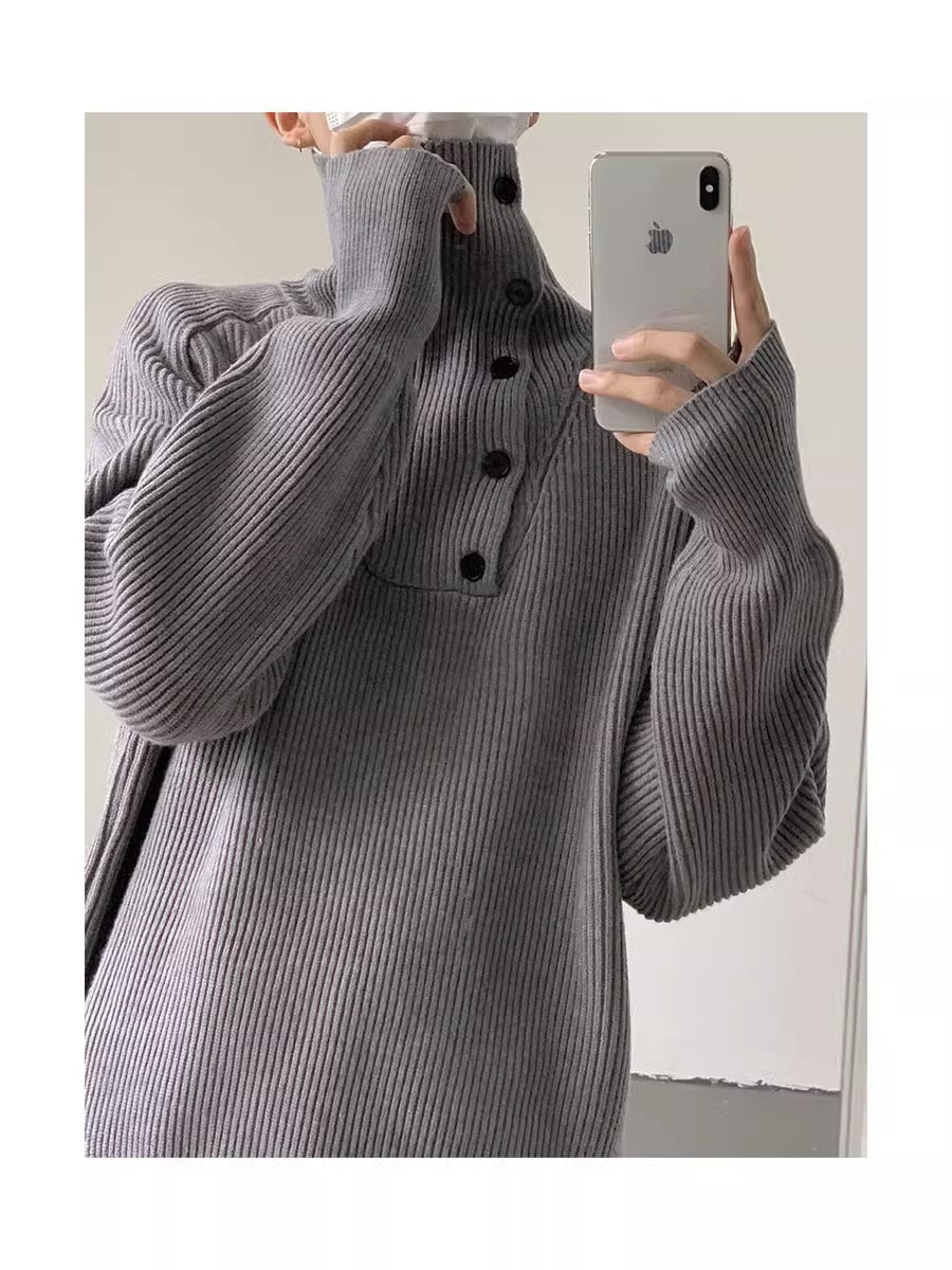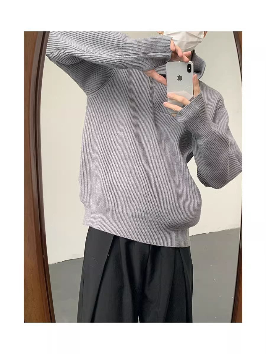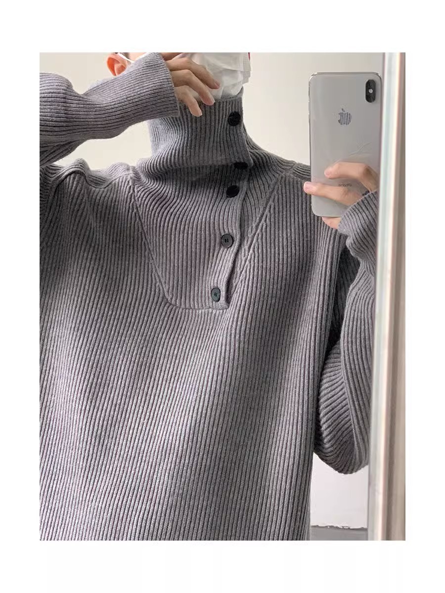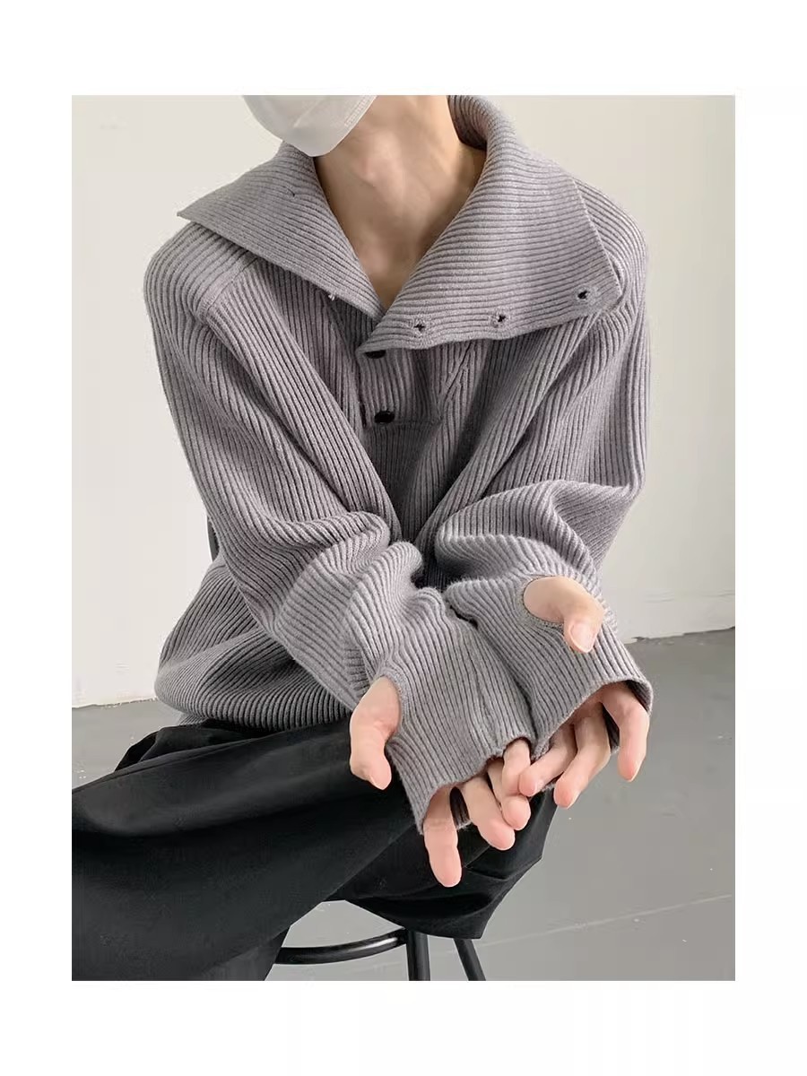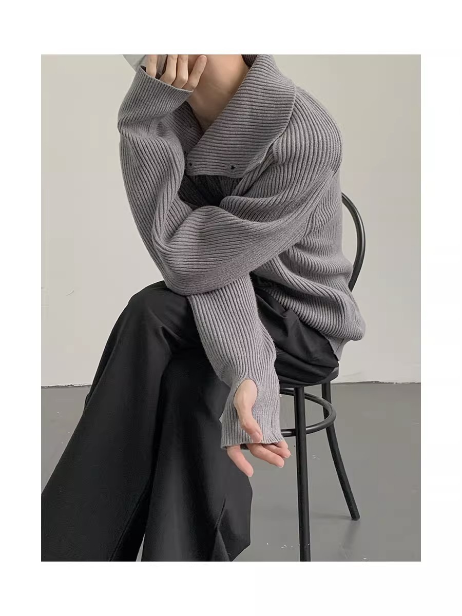 Botón estilo coreano suave textura glutinosa medio suéter de cuello alto de los hombres de alto grado de otoño e invierno flojo perezoso suéter abrigo de moda