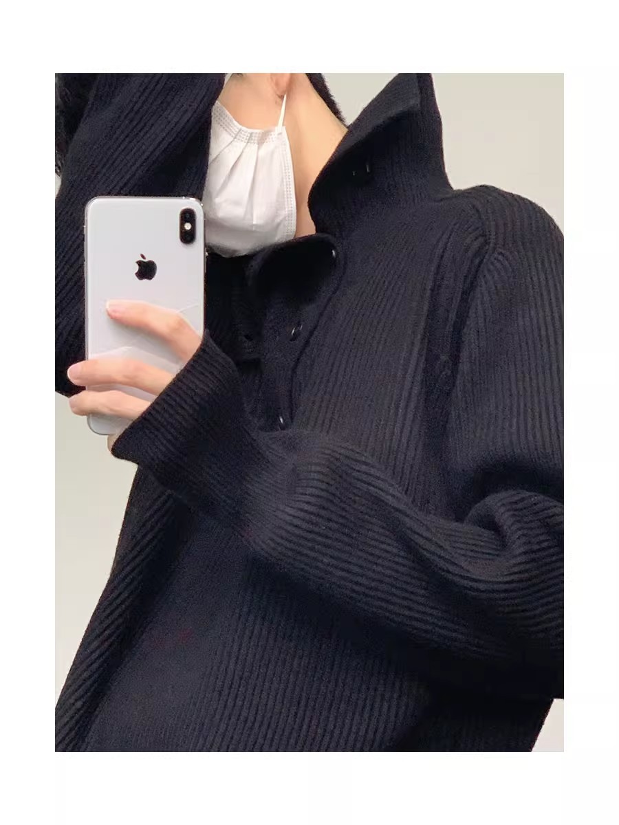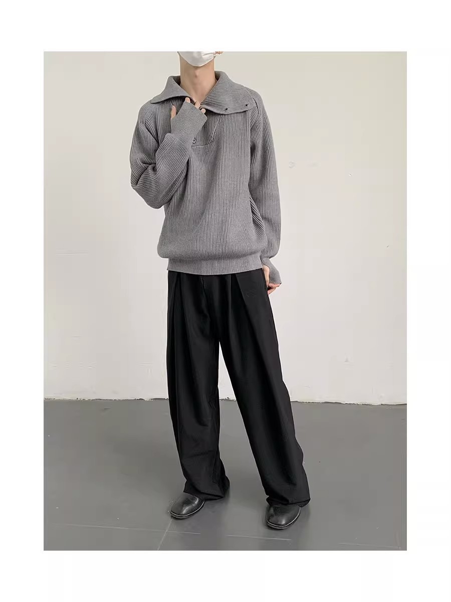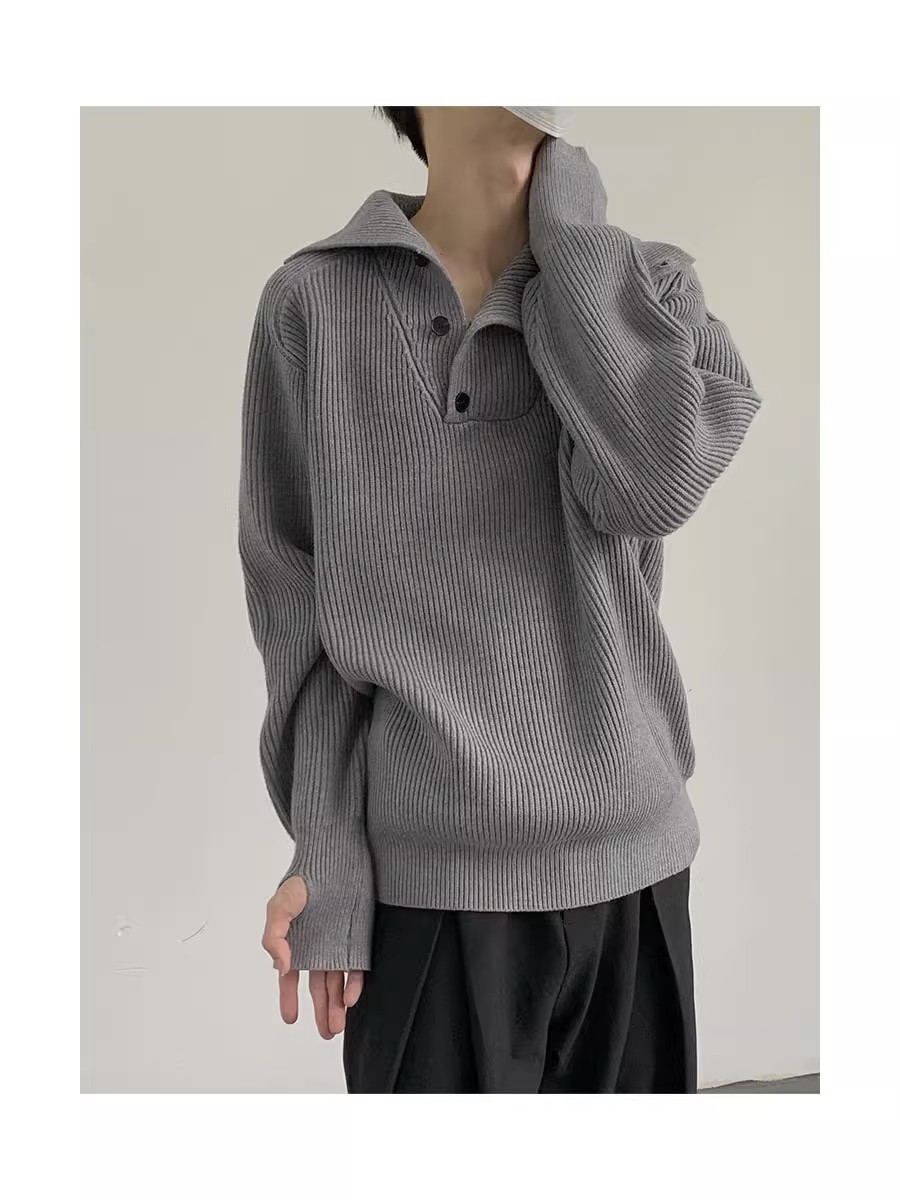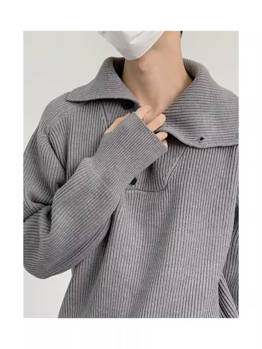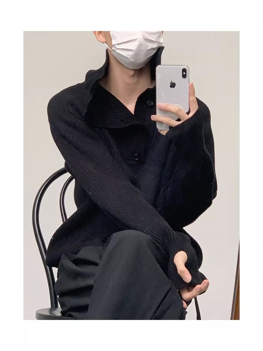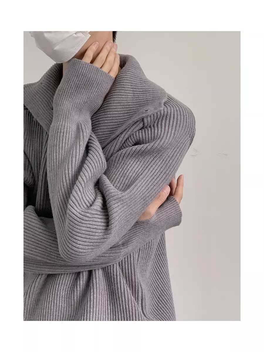 Botón estilo coreano suave textura glutinosa medio suéter de cuello alto de los hombres de alto grado de otoño e invierno flojo perezoso suéter abrigo de moda