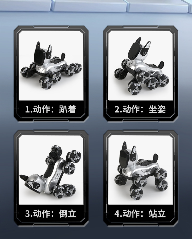 vehículo eléctrico transfronterizo de control remoto de ocho ruedas acrobacias mecánicas robot perro inteligente voz brazo oscilante escalada deformación juguetes para niños