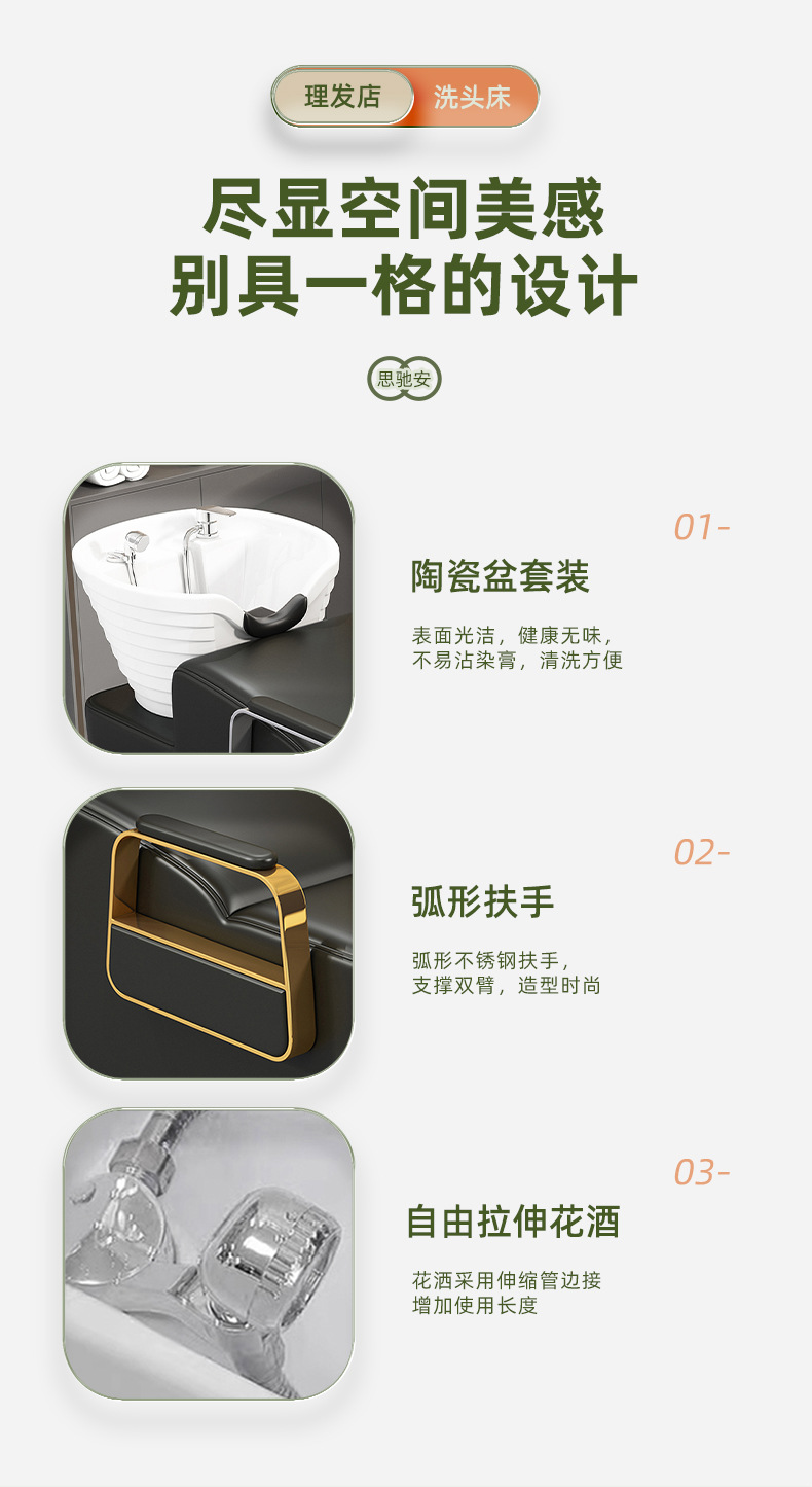 Fabricantes de camas de champú spot Peluquería minimalista moderna Peluquería medio cama de descarga de cama reclinable