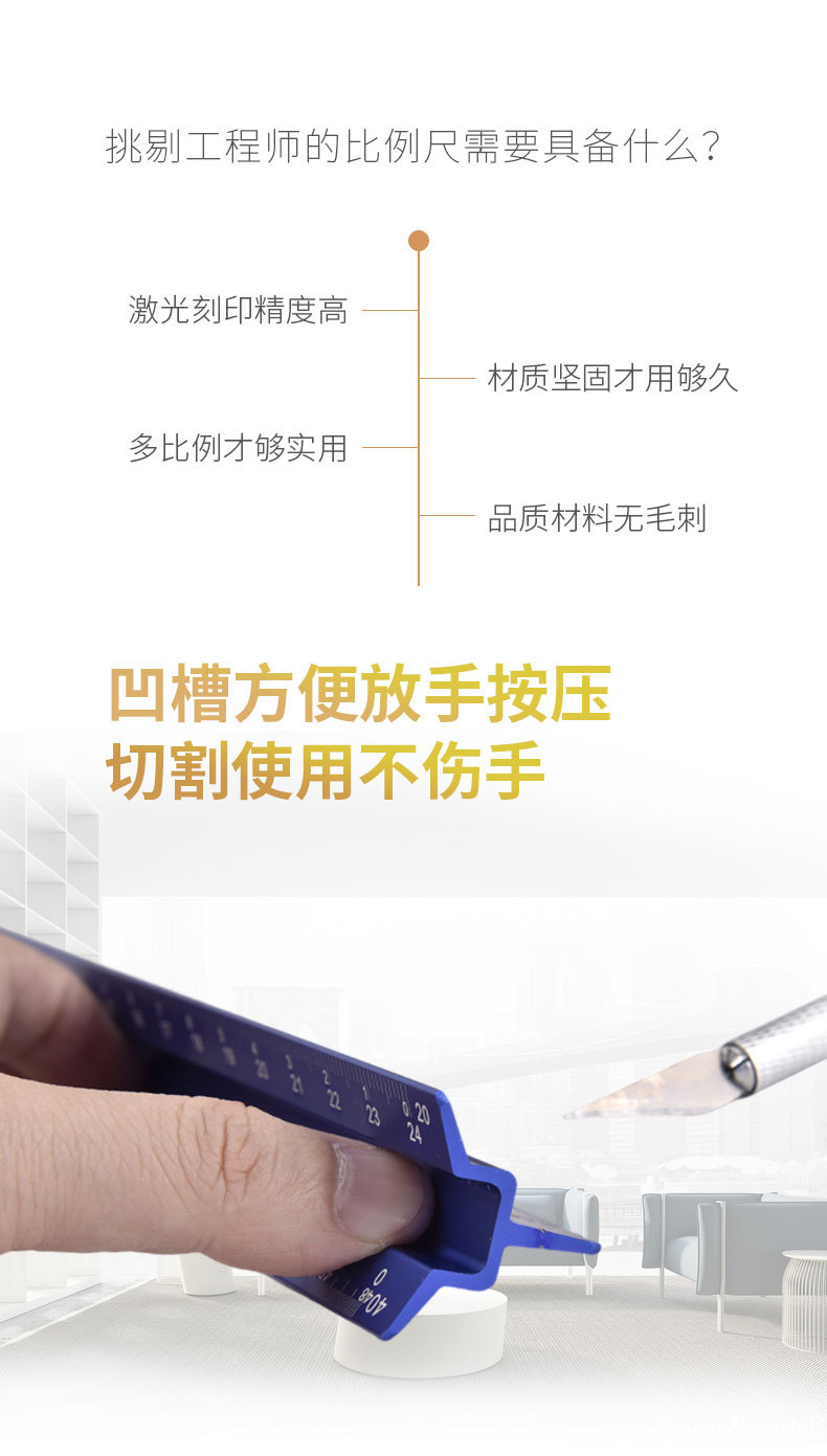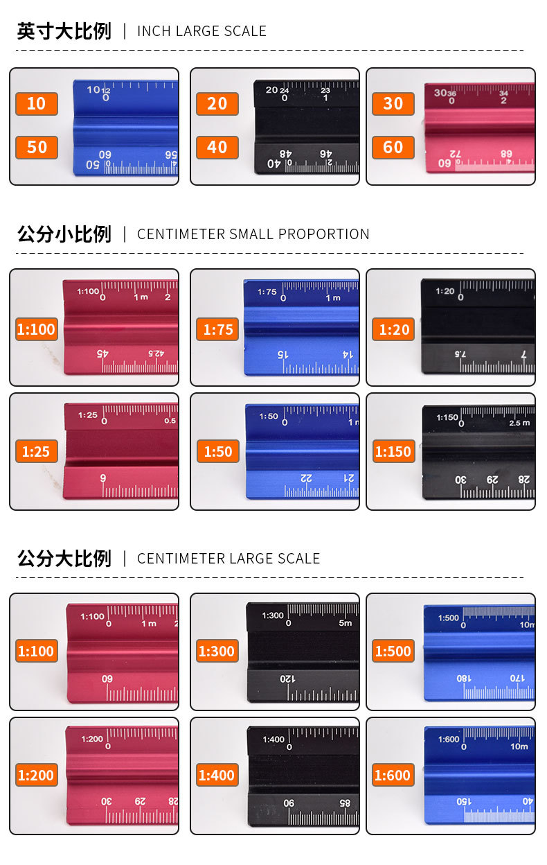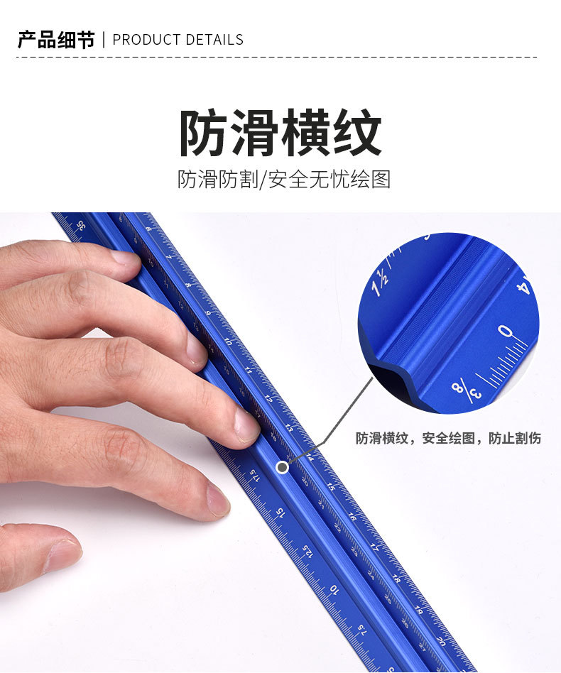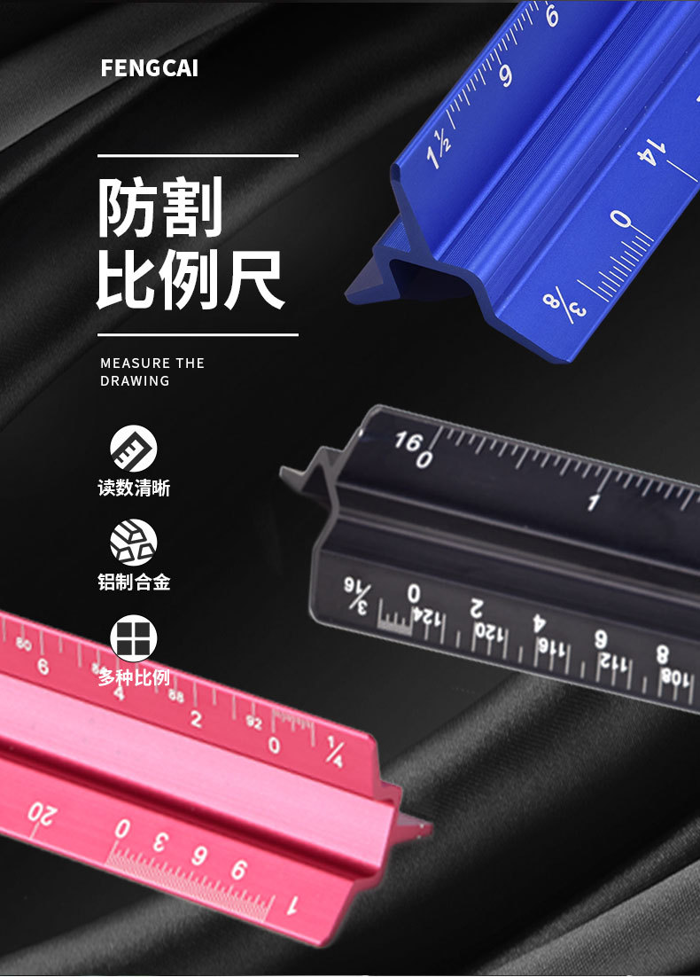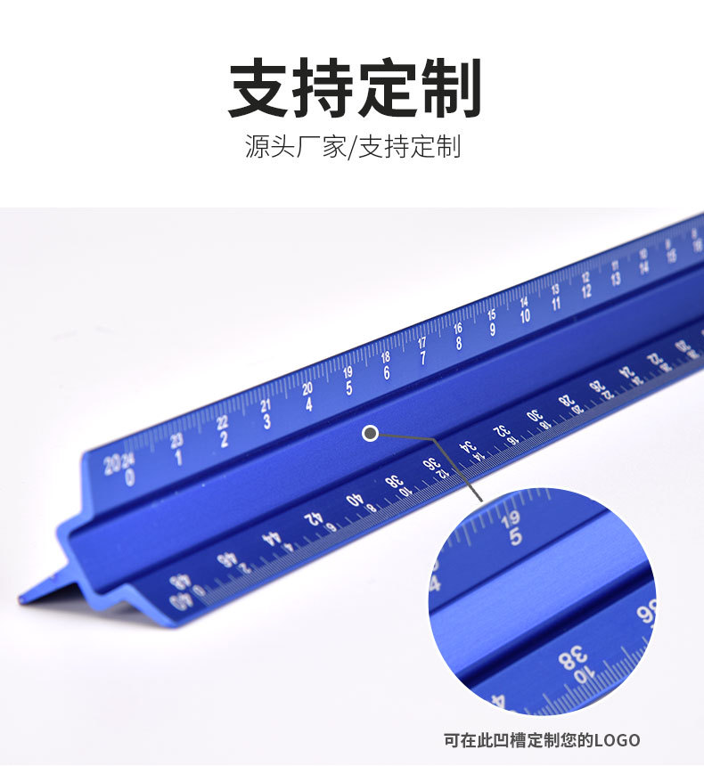 Regla de dibujo Mitsubishi a escala anti-corte personalizada, escala triangular, herramienta de medición de dibujo de diseño interior