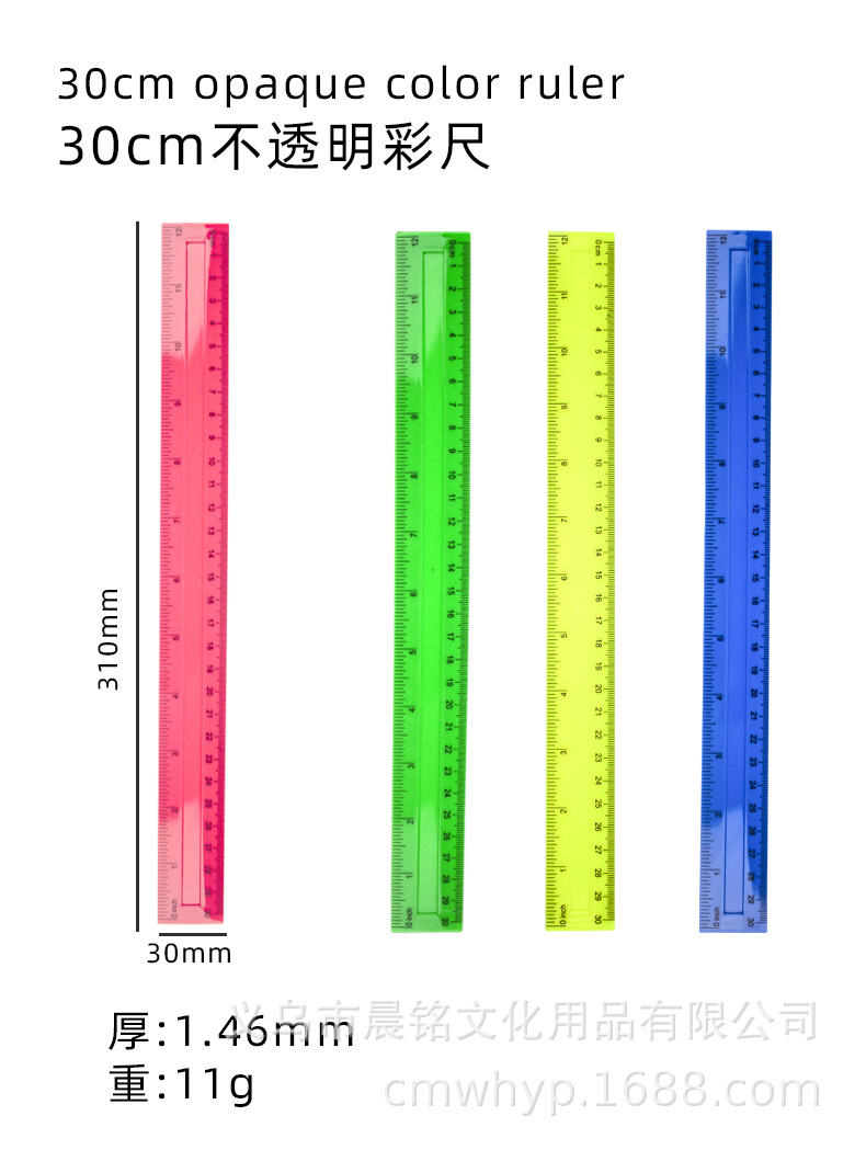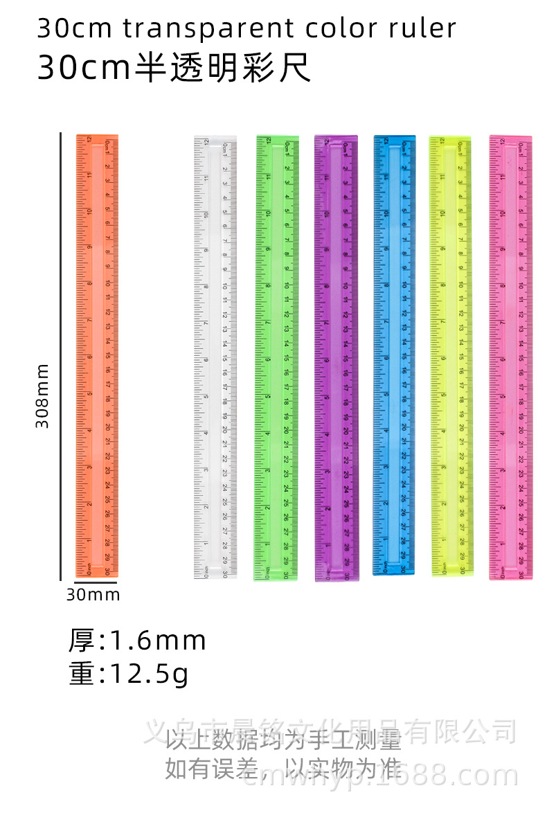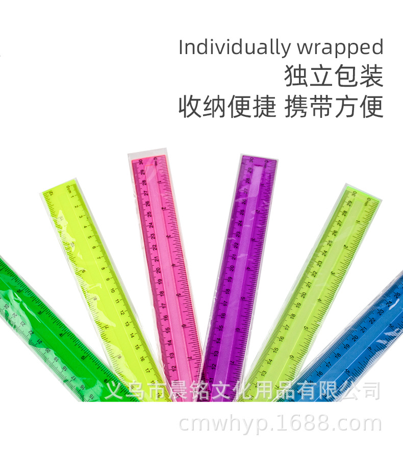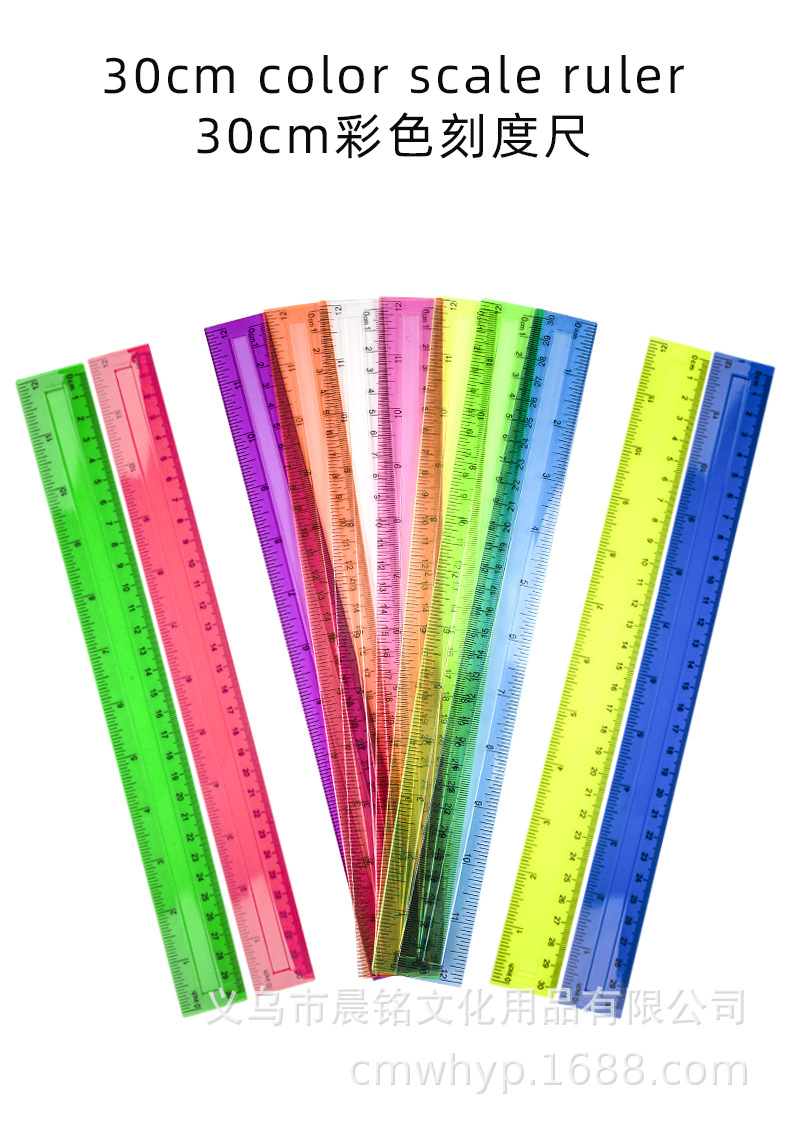 Regla recta de 11 colores 30cm regla cóncava escala transparente de color regla recta única bolsa OPP para estudiantes herramientas de medición de dibujo