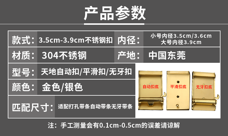 3,5/3,8 hebilla de cinturón de acero inoxidable hebilla sin dientes tipo prensa para hombre hebilla de cinturón de alta calidad hebilla de cinturón de material de sensación venta directa