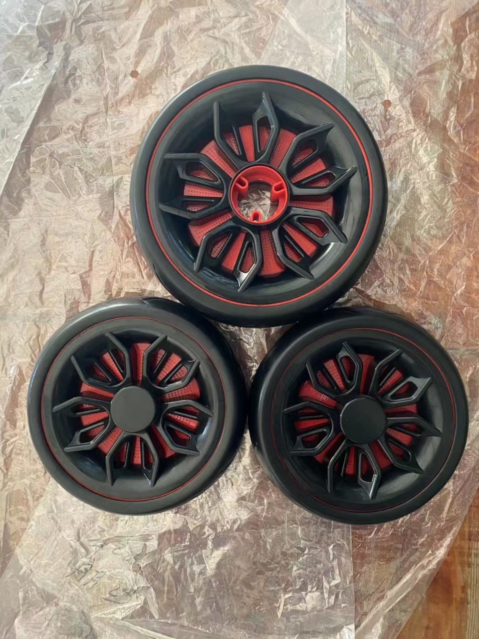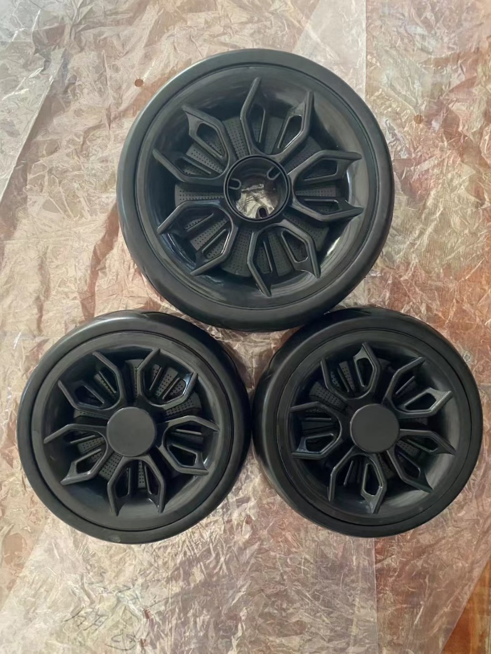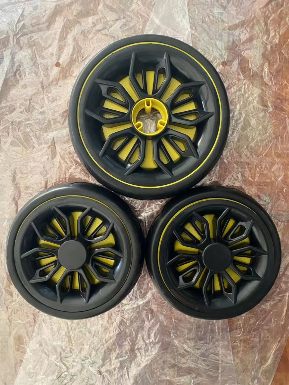 Accesorios del cochecito de los niños triciclo ampliado espuma mudo rueda plástico macho y hembra bebé mano empuje neumático la bicicleta