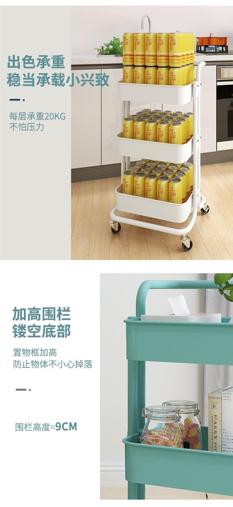 Estante de carro, cochecito, piso de cocina, estante de almacenamiento de baño móvil de varios pisos, estante de almacenamiento de bocadillos de dormitorio